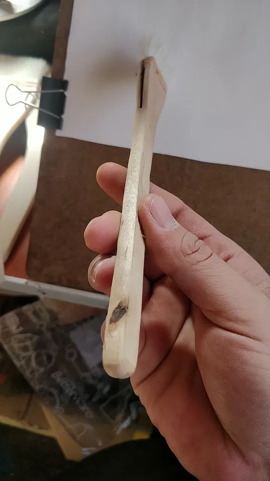 Шов щетины не такой, как на фотографиях. Дерево тоже не было