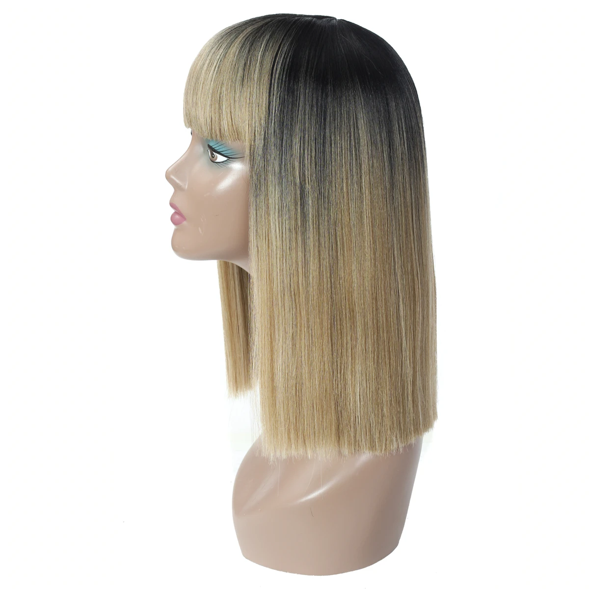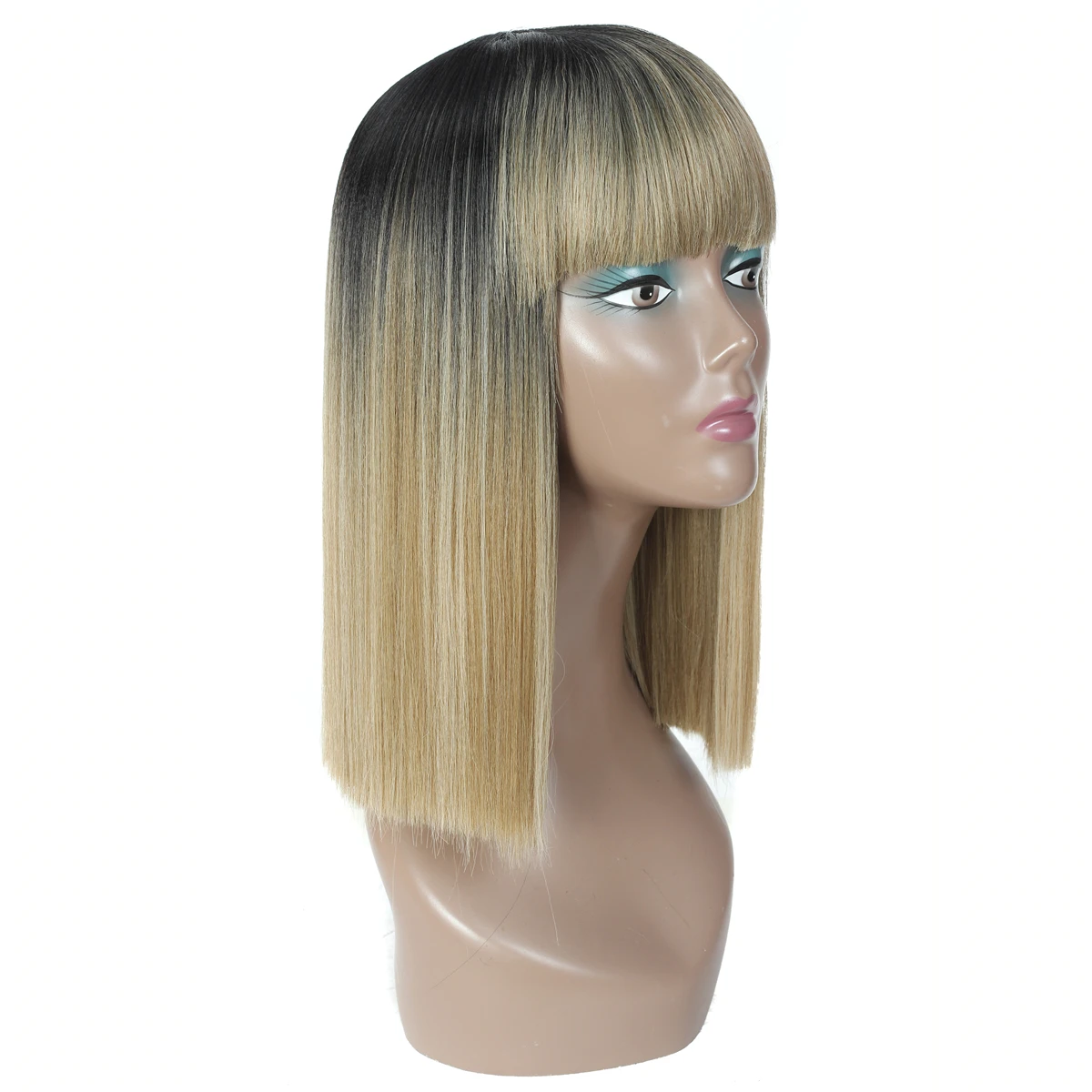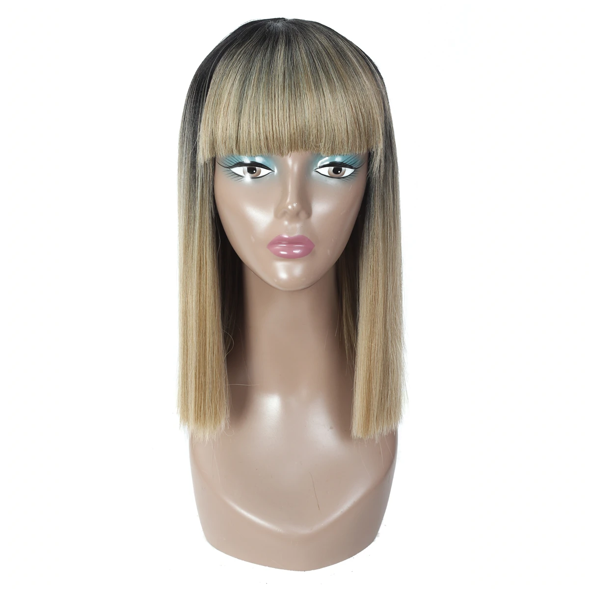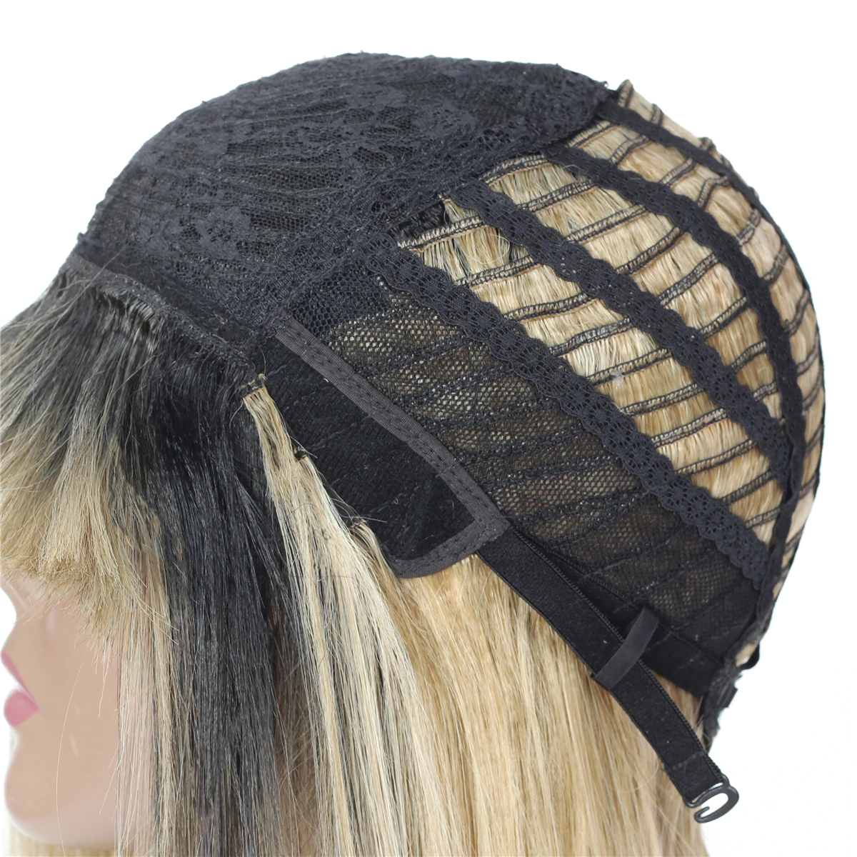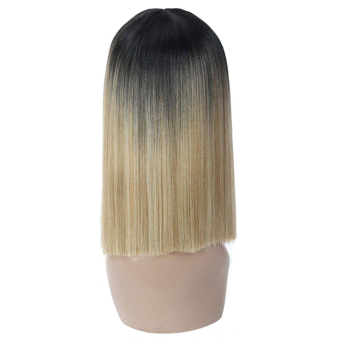 Парик YunRong синтетический с челкой, с черными корнями, с эффектом омбре, светлые волосы для женщин, термостойкие волосы из синтетического волокна