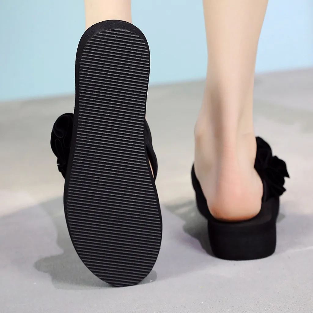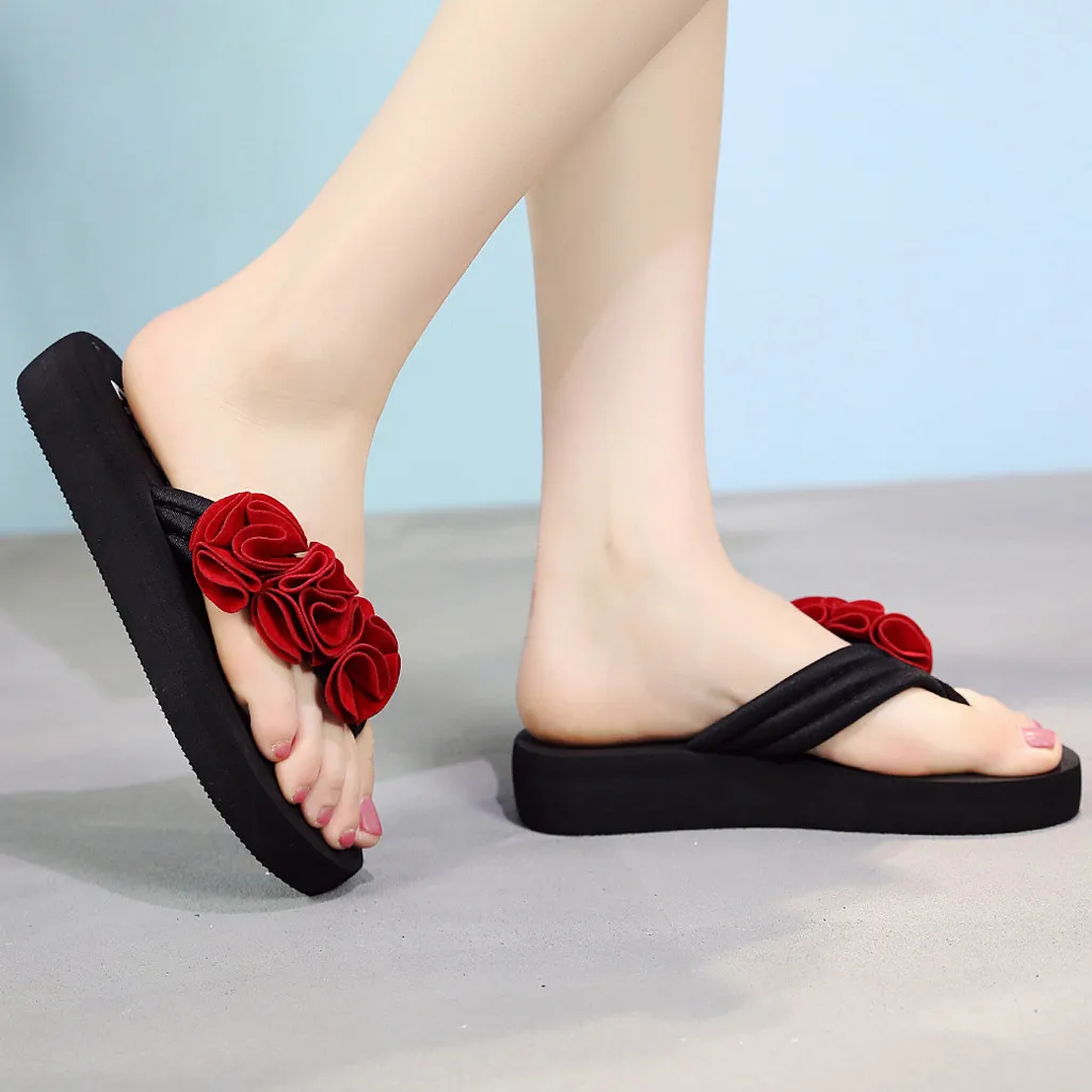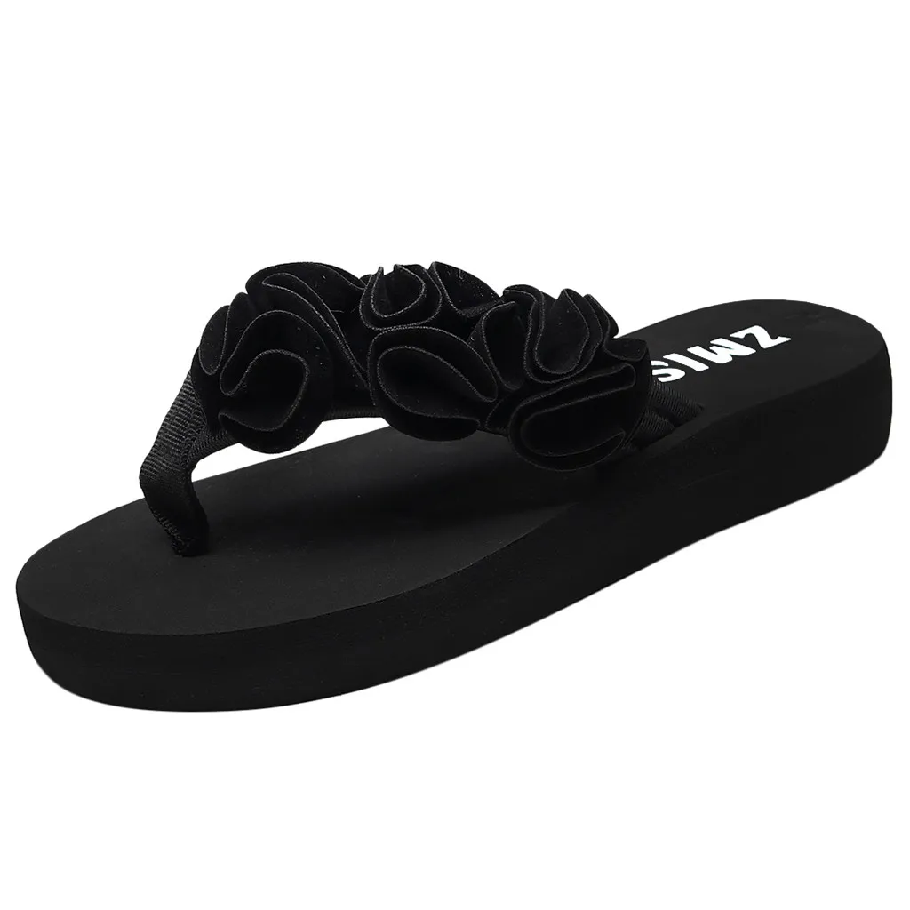 Летние модные женские пляжные шлепанцы на нескользящей танкетке с цветочным принтом
