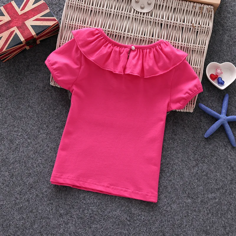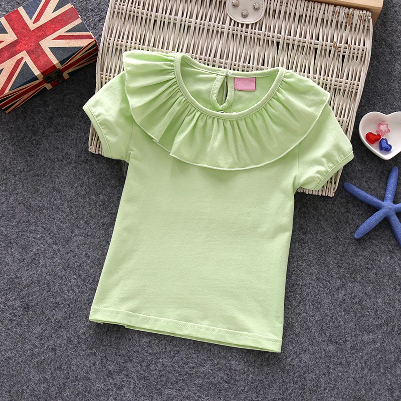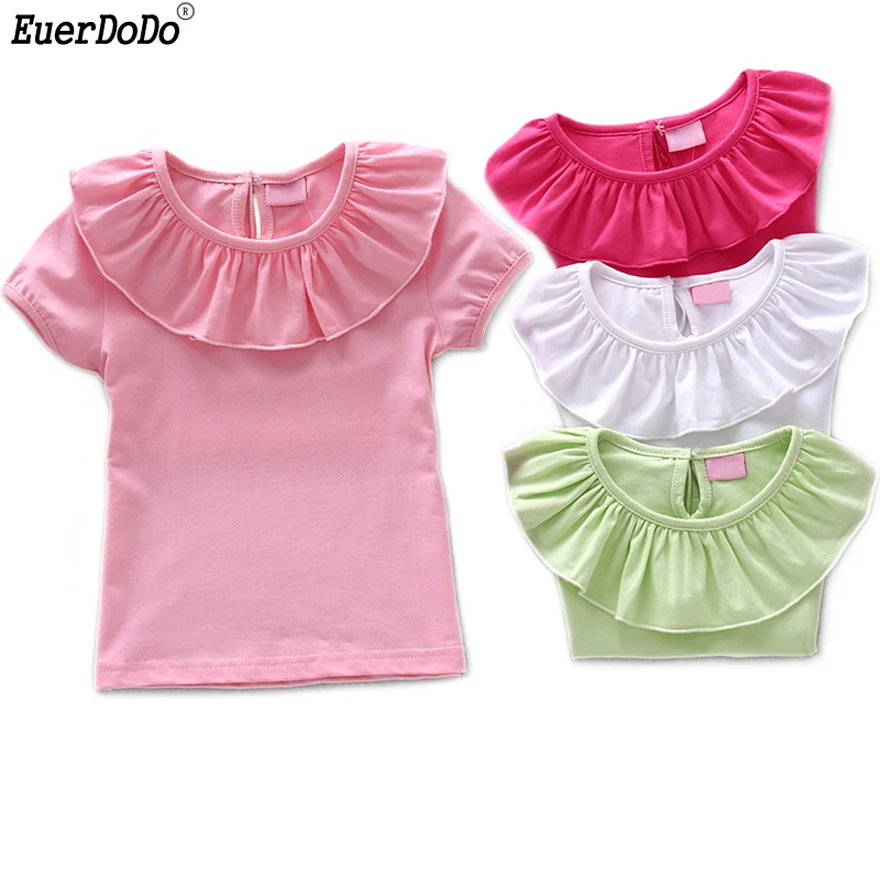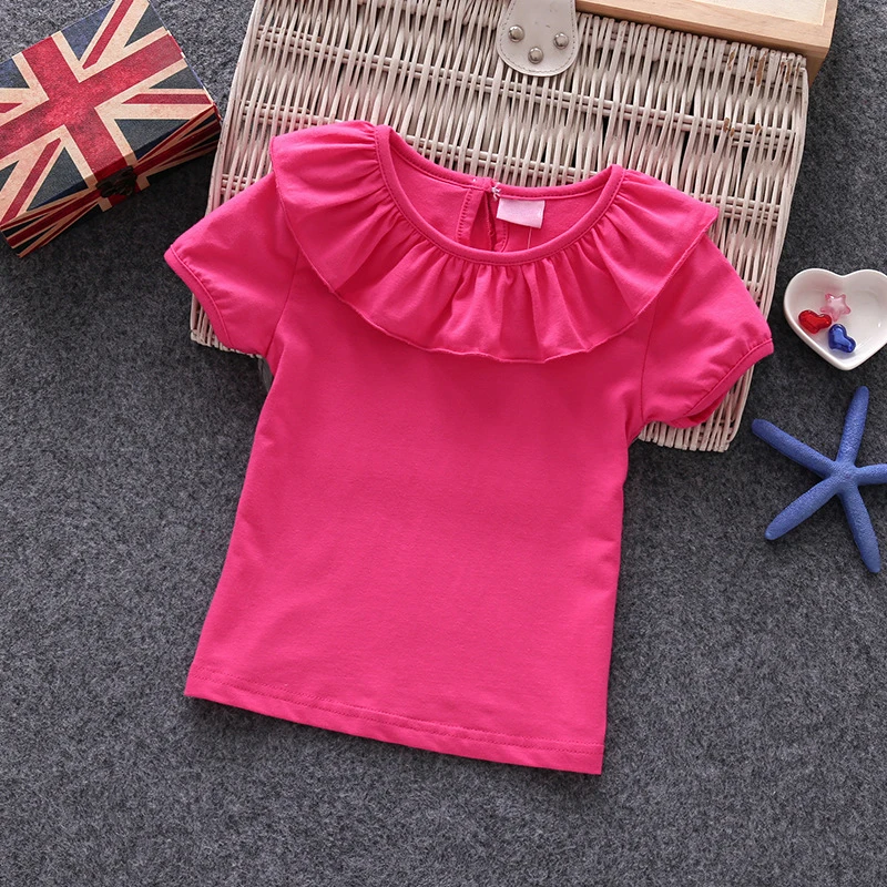 Малыш Футболка для девочек хлопок Топы Сплошной цвет с коротким рукавом Детские футболки для девочек лето Детская футболка Девочка 2 3 4 5 6Y