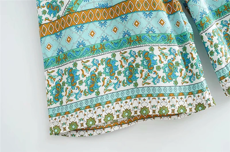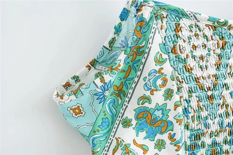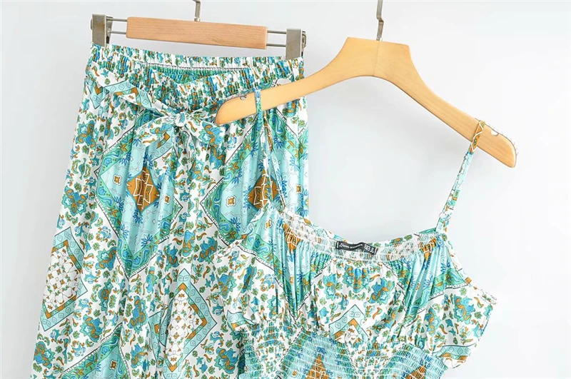 Женский винтажный комплект из двух предметов, Зеленый цветочный топ...