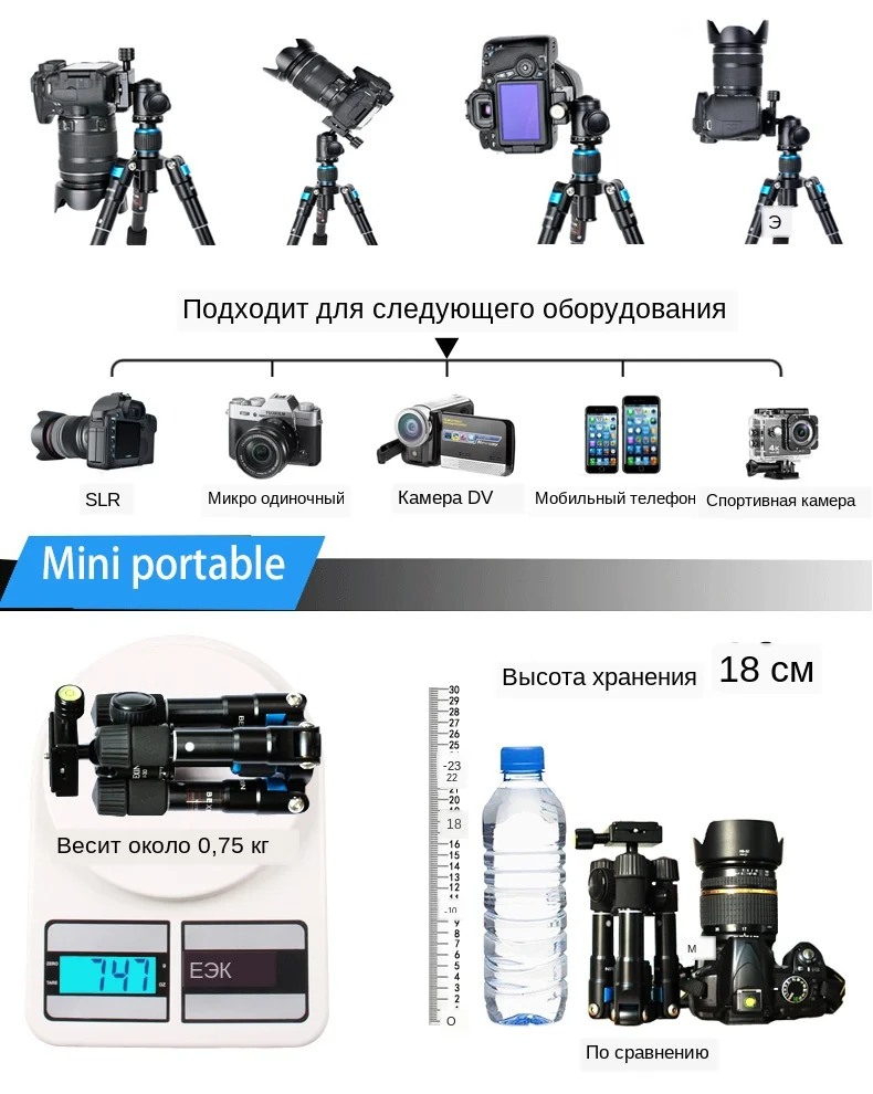 Профессиональный штатив-Трипод для камеры MAMNE, крепление для Canon Sony DSLR, зажим для телефона, видеостудия, Мини Портативный штатив с сумкой для переноски