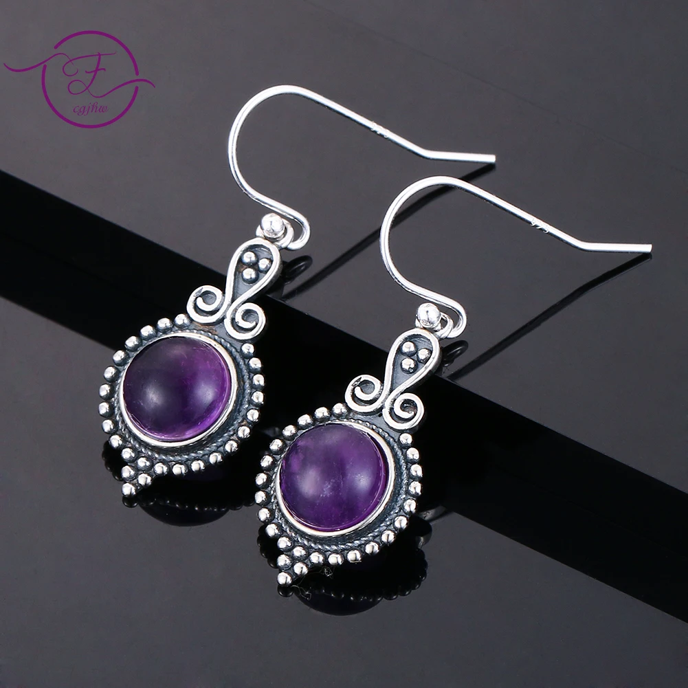 Винтажные Аметистовые висячие серьги из серебра 925 пробы, висячие серьги, подарок для женщин, девушек, юбилей, свадьбы, вечеринки