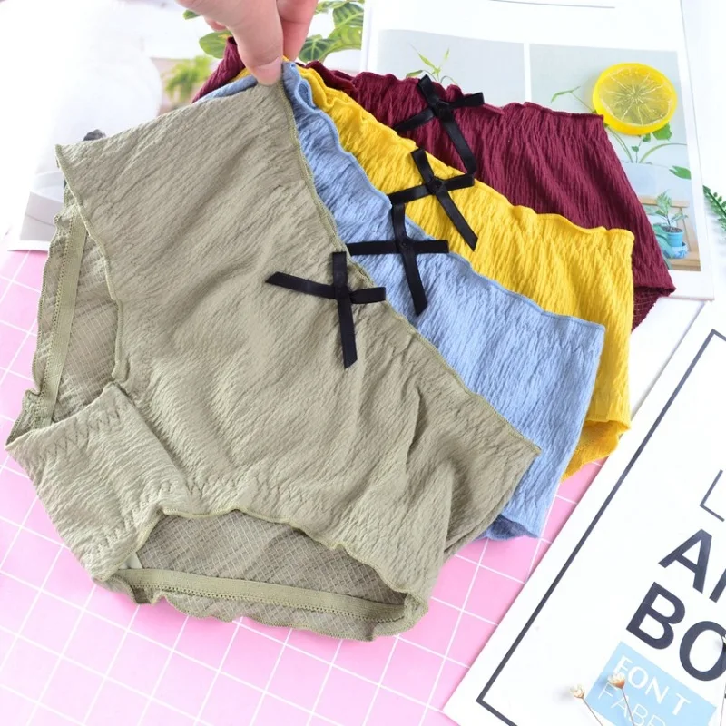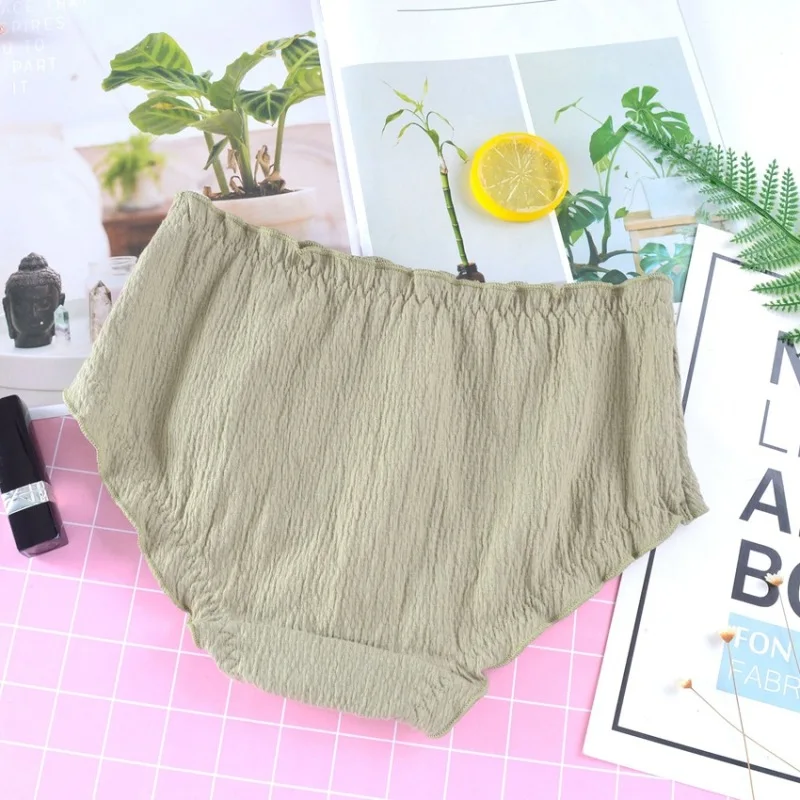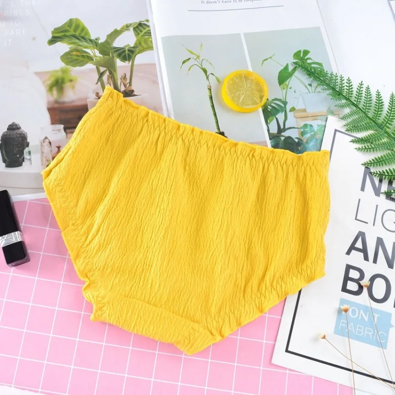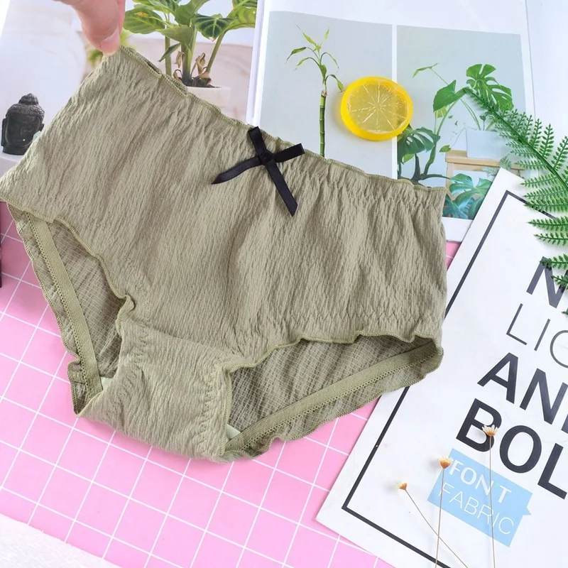 Хлопковое женское нижнее белье, Симпатичные Бесшовные женские трусики в стиле ретро со складками и средней талией, мягкие бретельки с оборками для девушек