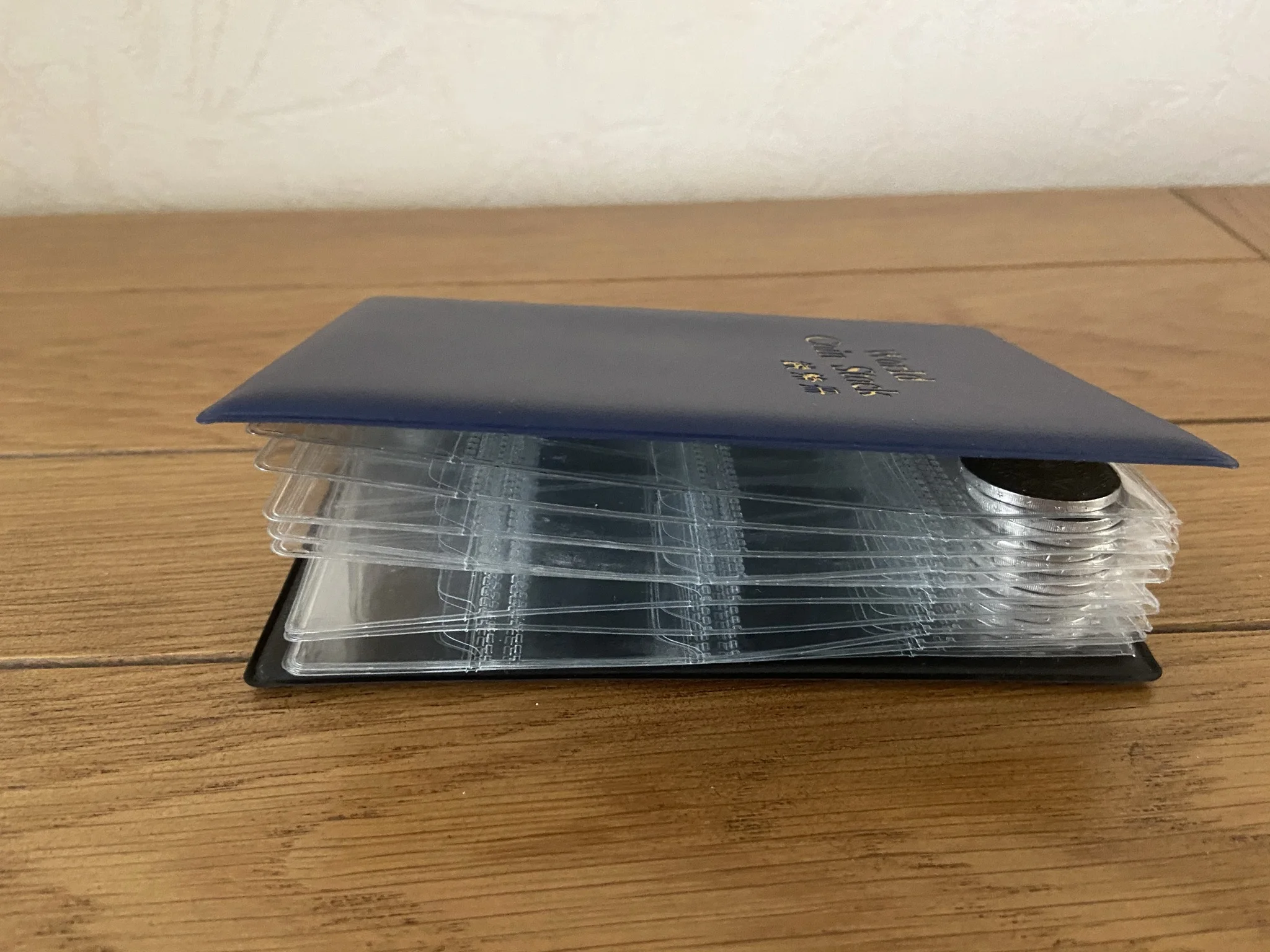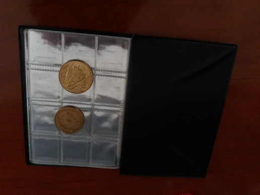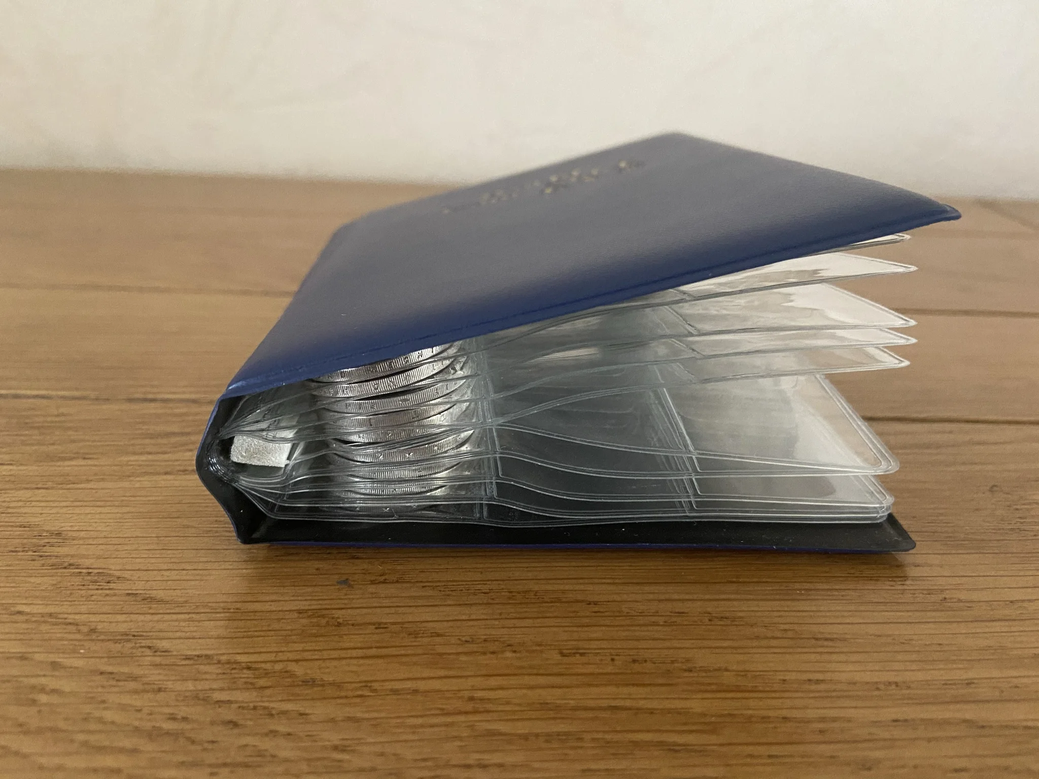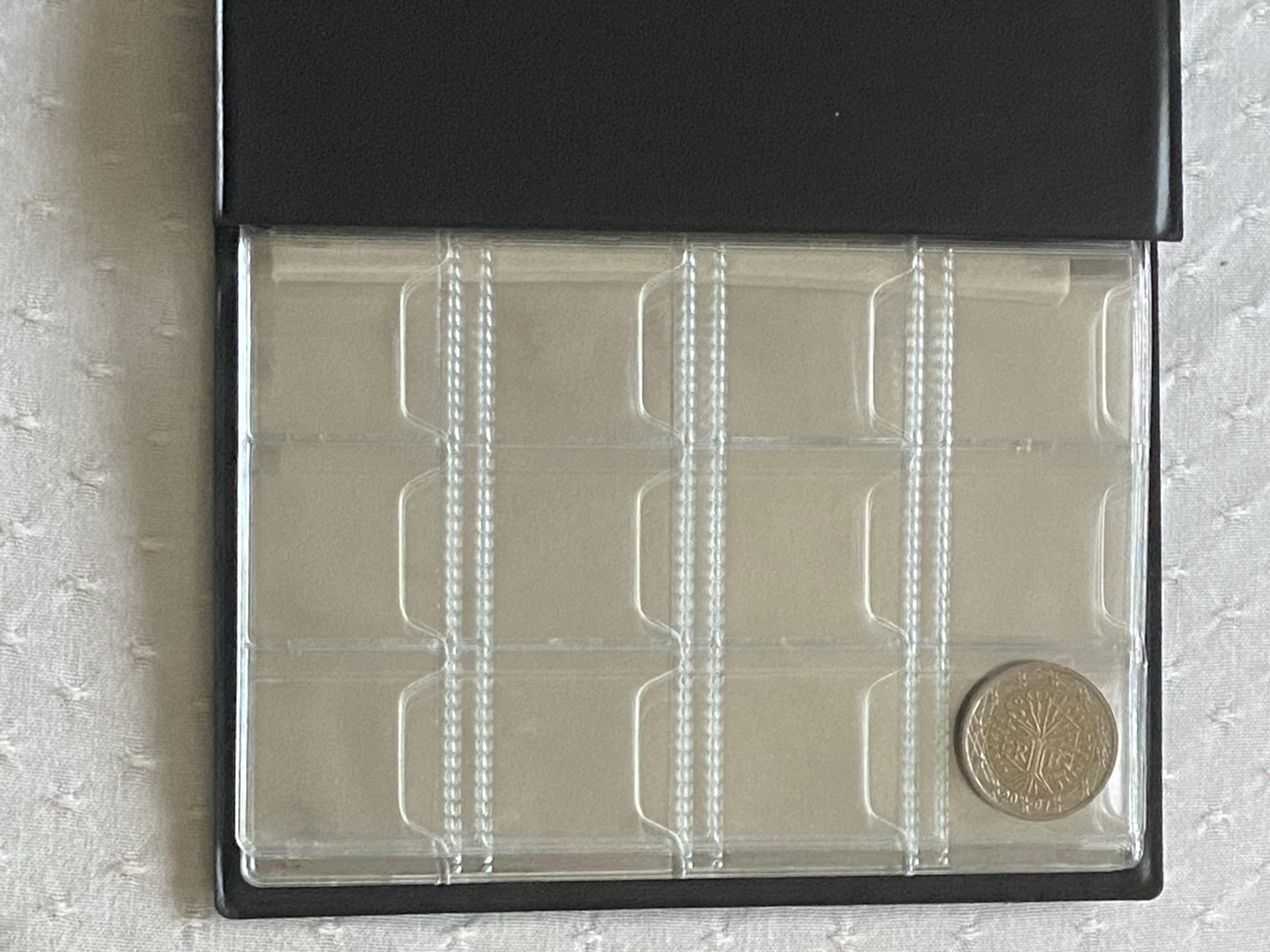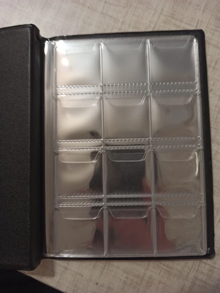 Муж доволен) У него нет очень крупных монет, поэтому всё влезло! Ячейки не большие. Небольшое пятно на внутренней стороне обложки, но не смертельно. Очень быстрая доставка. Рекомендую
