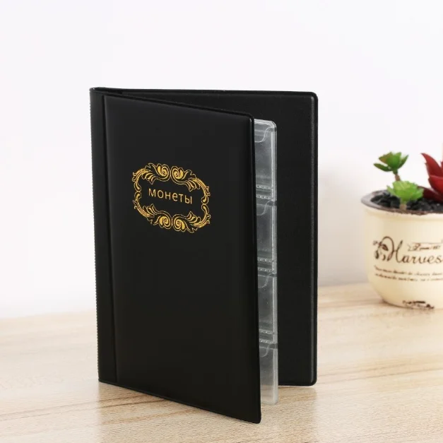 Альбом для монет в клетку, 10 страниц, 120 дюймов, мини-альбом для монет с кармашком для хранения монет во всем мире, коллекционный альбом, книга, чехол из ПУ, коллекционный карман, 11*15,5 см