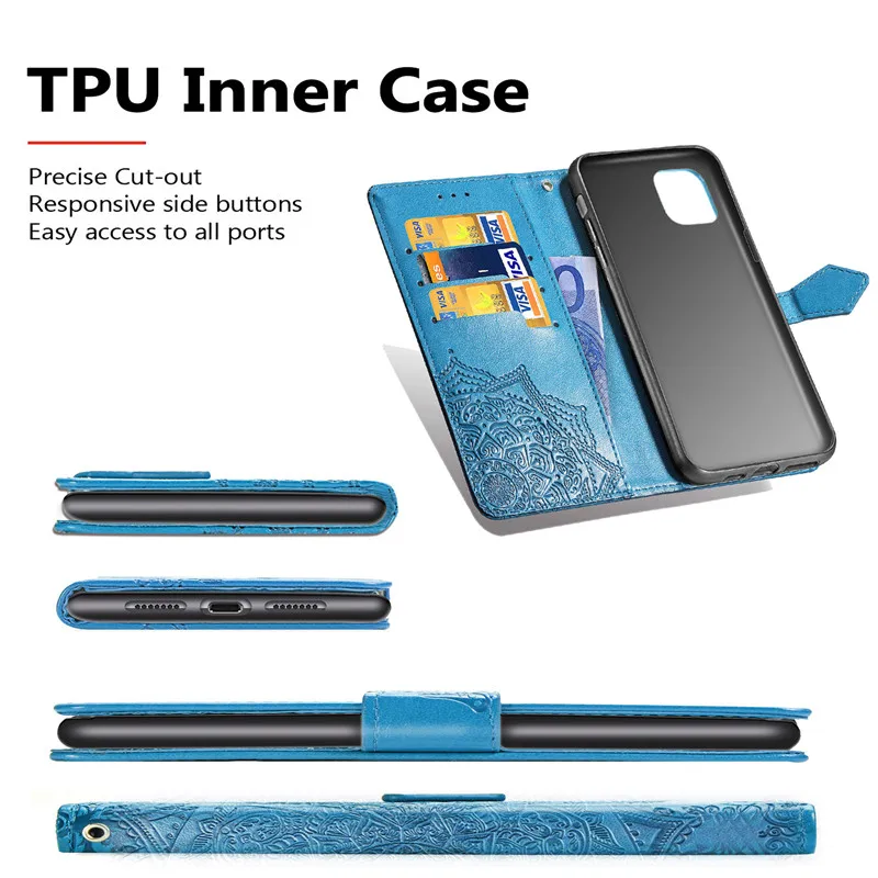 3D Цветочный флип-чехол для iPhone 11 Pro 7 8 6 6s Plus X XS Max XR кожаный рельефный кошелек чехол для телефона для Apple iPhone 5 5S SE 6 6s