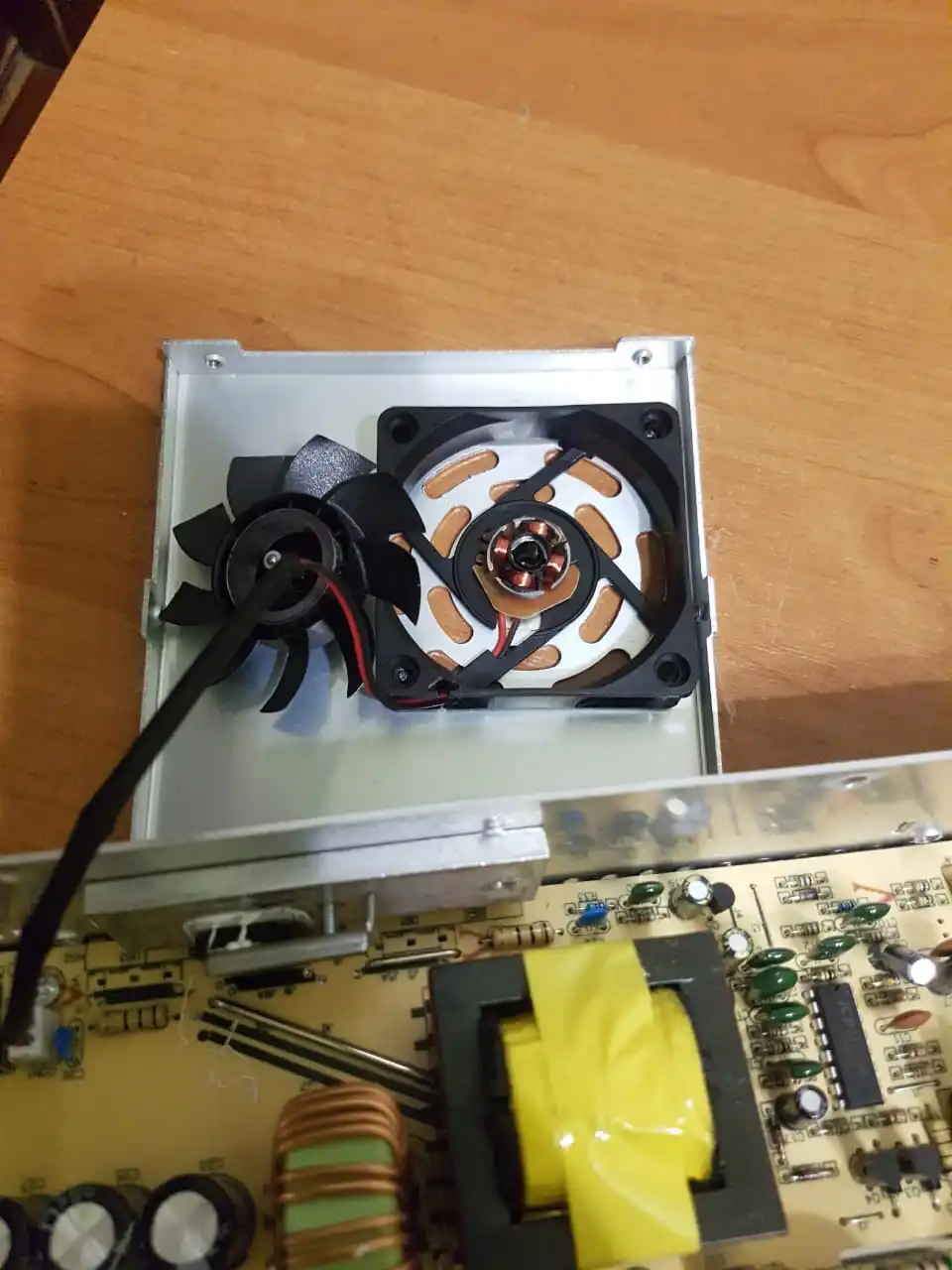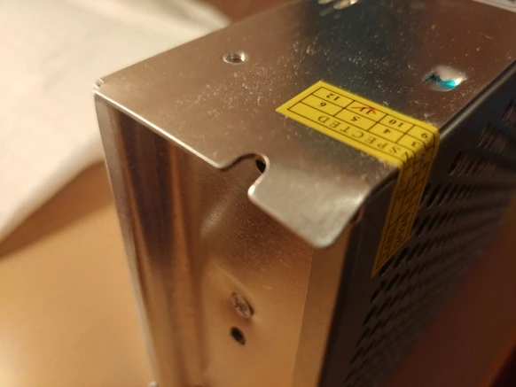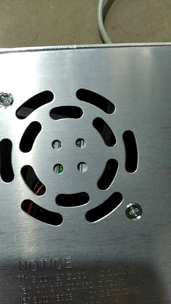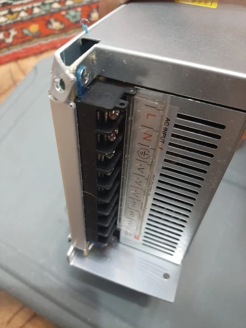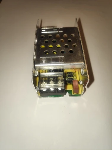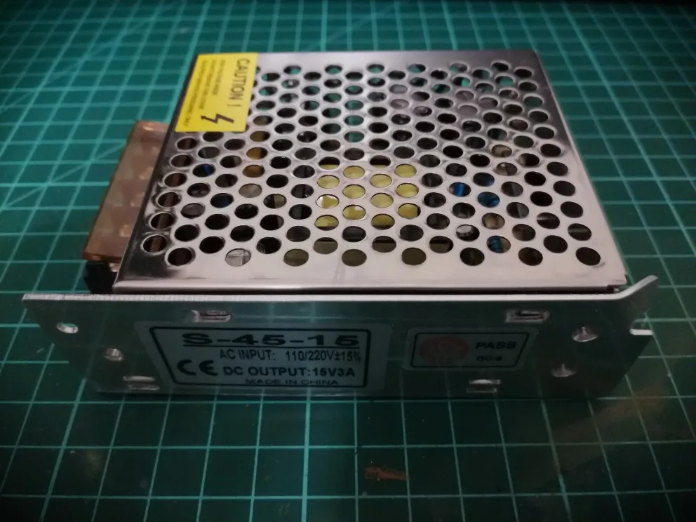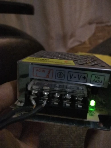 Блок питания на ладошке, вентилятора нет, немного тёплый, когда работает под нагрузкой. При привышении нагрузки или кз уходит в защиту. Рядом с коннектором есть подстроечный резистор. 3А хватает, чтобы закручивать шуруповертом саморезы 4.5х70 и более. Покупал за 290.99рублей.