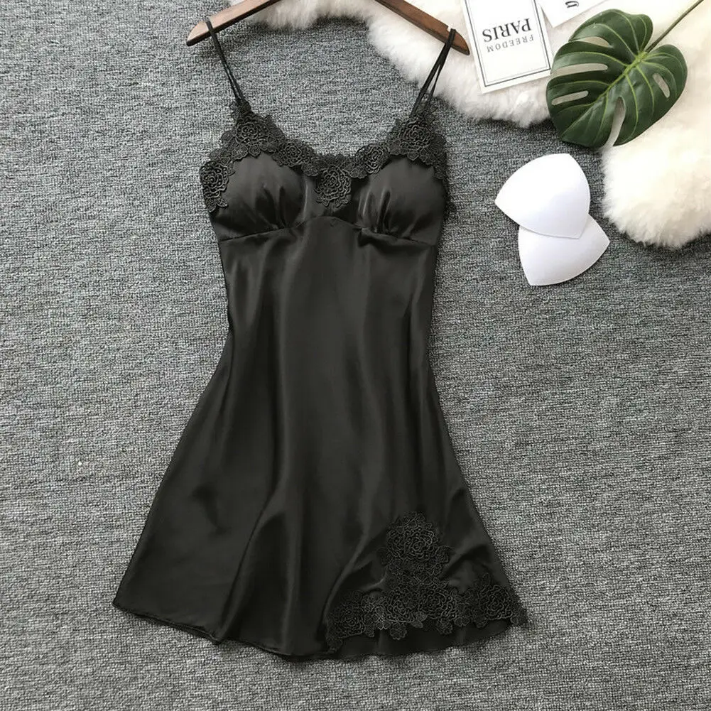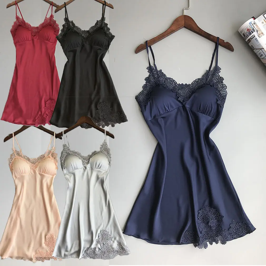 Женская атласная шелковая пижама ночная рубашка Нижнее белье ночное сексуальное платье юбка