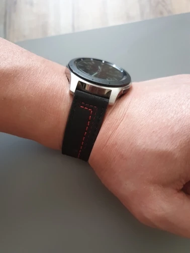 Ремешок пришел за 10 дней совместно с другим силиконовым, доставка быстрая, это радует. К часам samsung galaxy watch 46мм подошёл, но с ним часы смотрятся не так объемно. Заказала еще обычный силиконовый и муж одел пока его. А так на ощупь очень приятный, застегивается легко.