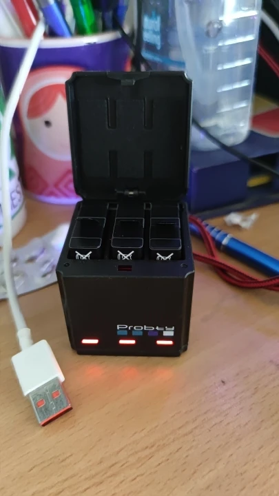 Продукт прибыл очень быстро, и упаковка очень хорошая, и они также дали хороший мешочек. Все три батареи работают хорошо, и зарядное устройство работает хорошо, и оно также заряжает оригинальный аккумулятор GoPro Hero 8. Просто рекомендуется.
