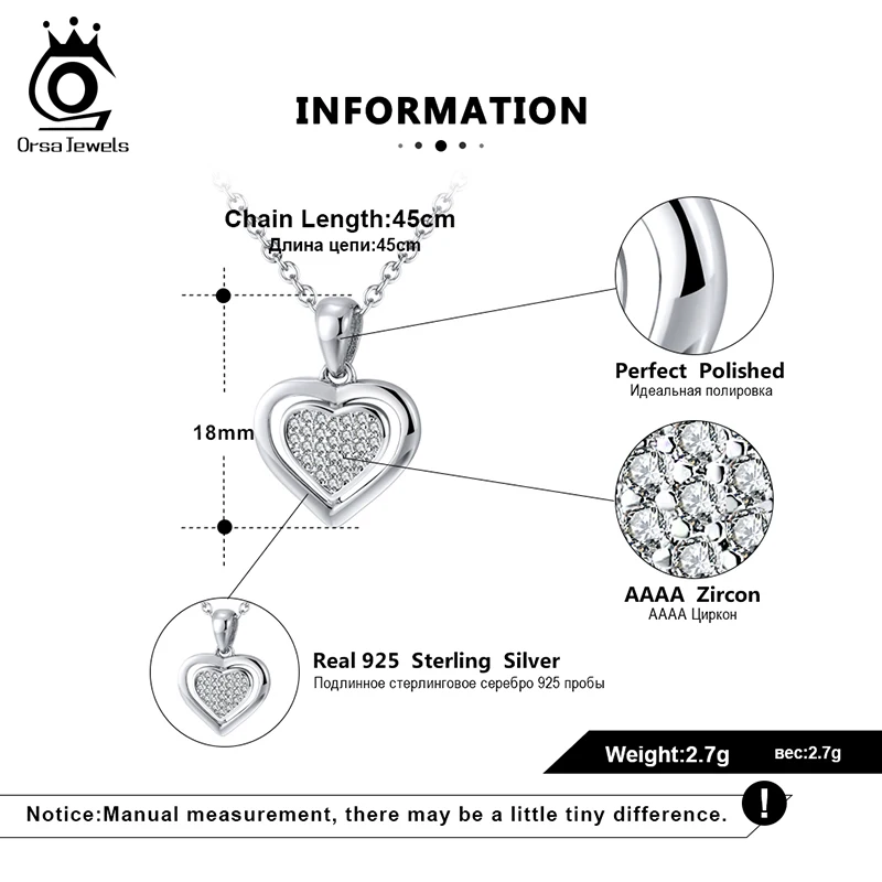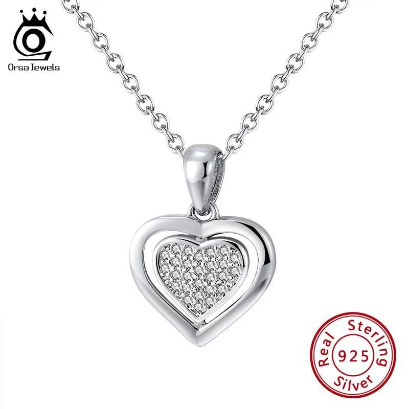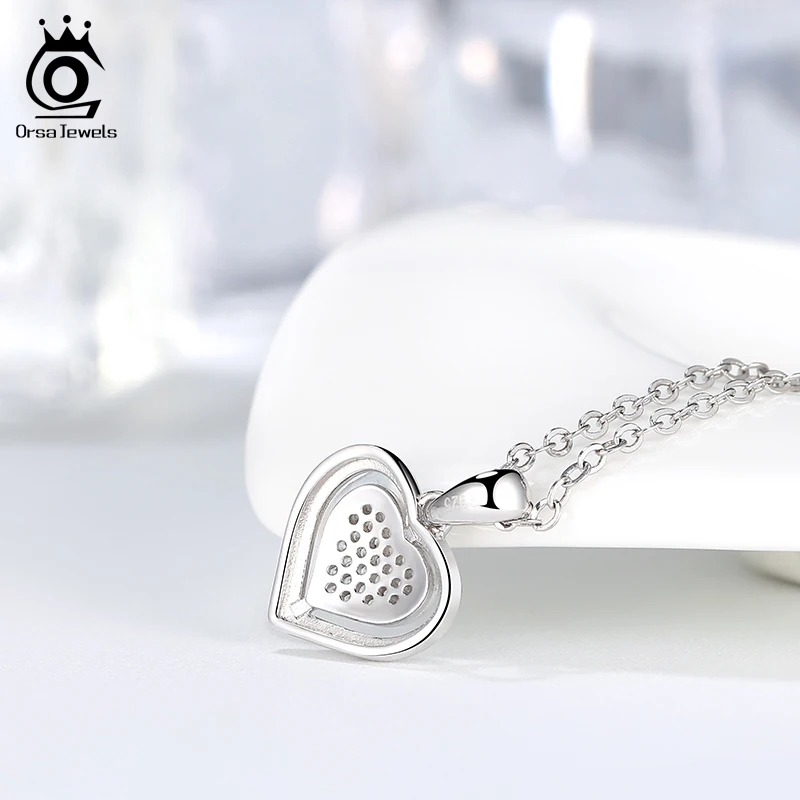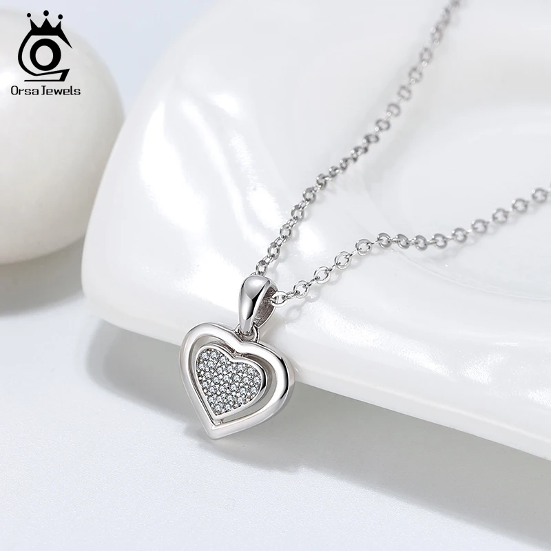 ORSA JEWELS ожерелье с кубическим цирконием AAAA в форме сердца, ожерелье из стерлингового серебра 925 Серебряное колье пробы для женщин, ювелирные изделия, подарок на помолвку OSN223