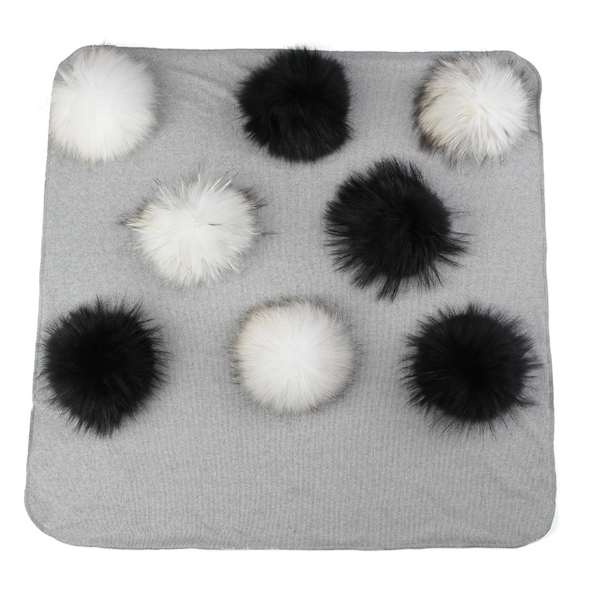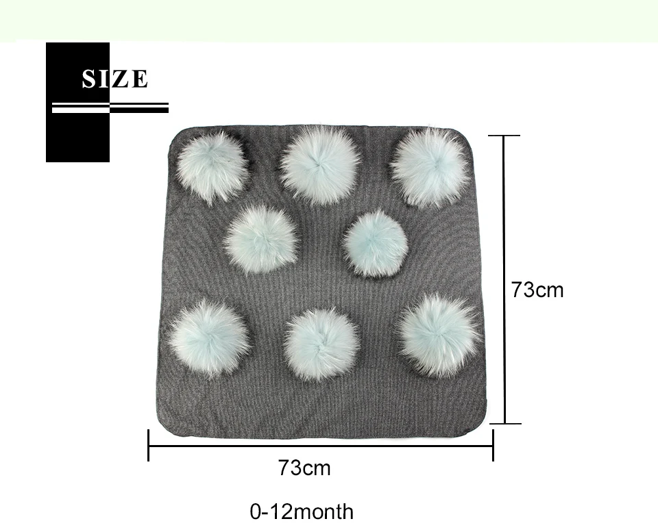 Детские теплые хлопковые пеленки, одеяло для путешествий, одноцветное одеяло для новорожденных, постельные пеленки с 8 помпонами из натурального меха