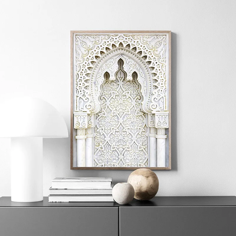 Марокканская АРКА, холст для старой двери, живопись, исламское здание, настенный художественный плакат, принт Хасана II, мечети, мусульманское искусство