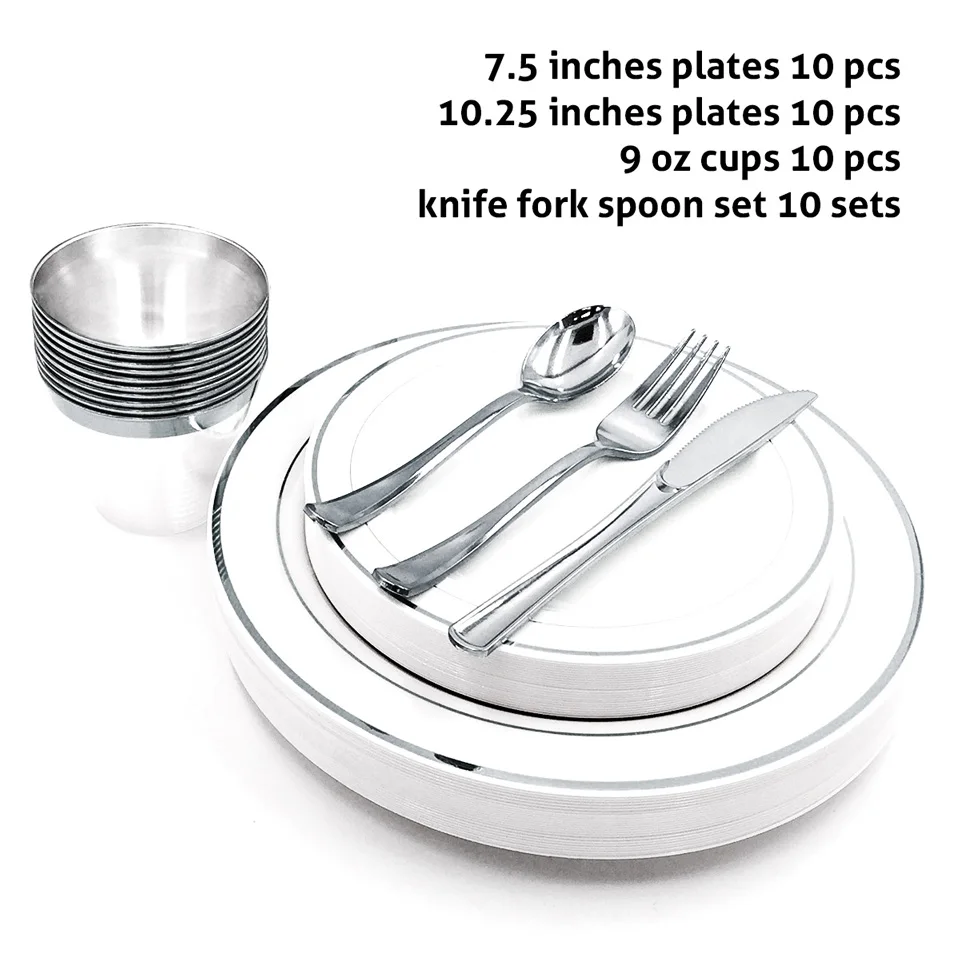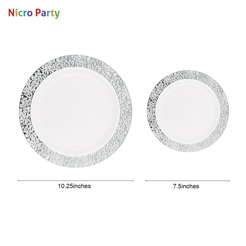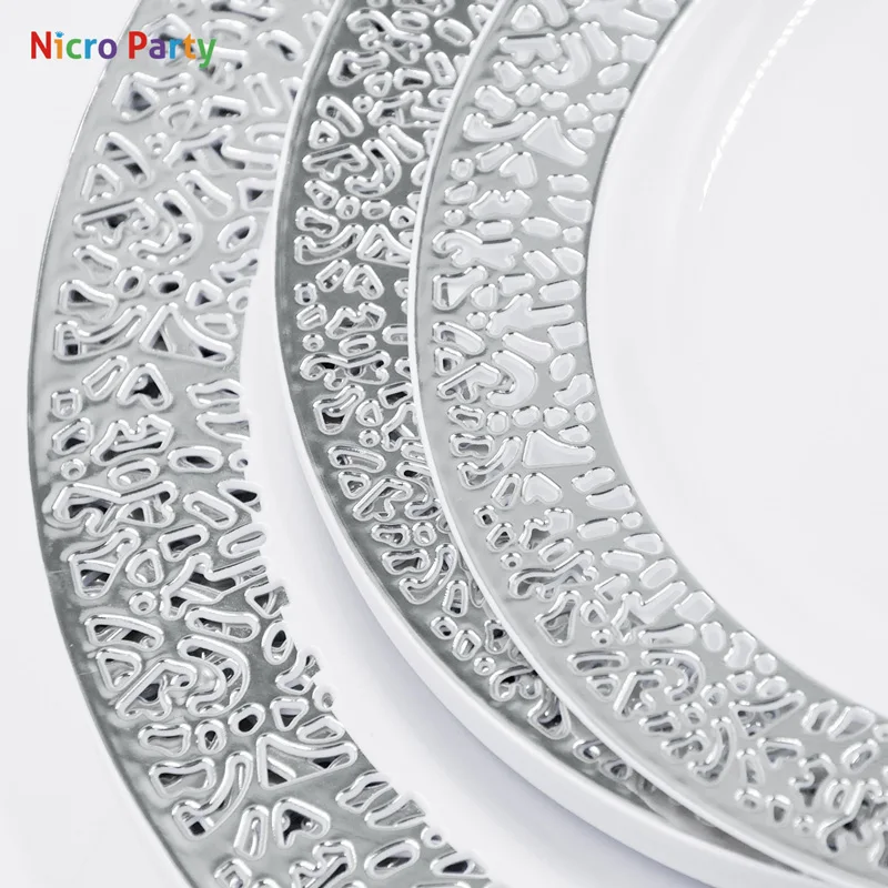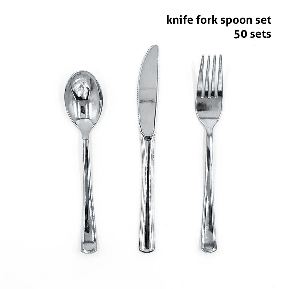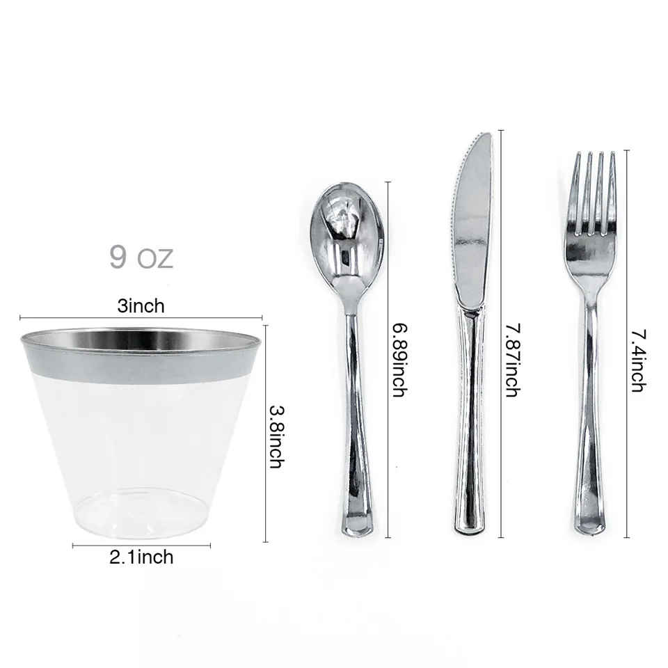 Bыбрать отправку из Испании или Бельгии, Nicro 102050 штнабор серебряных чашки Пластик пластины вилка Ножи Ложки одноразовые ясный набор посуды вечерние поставки