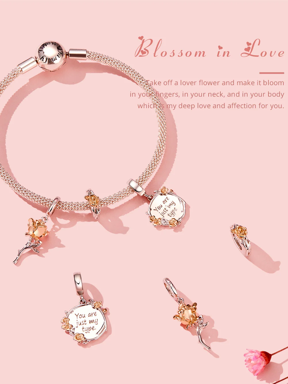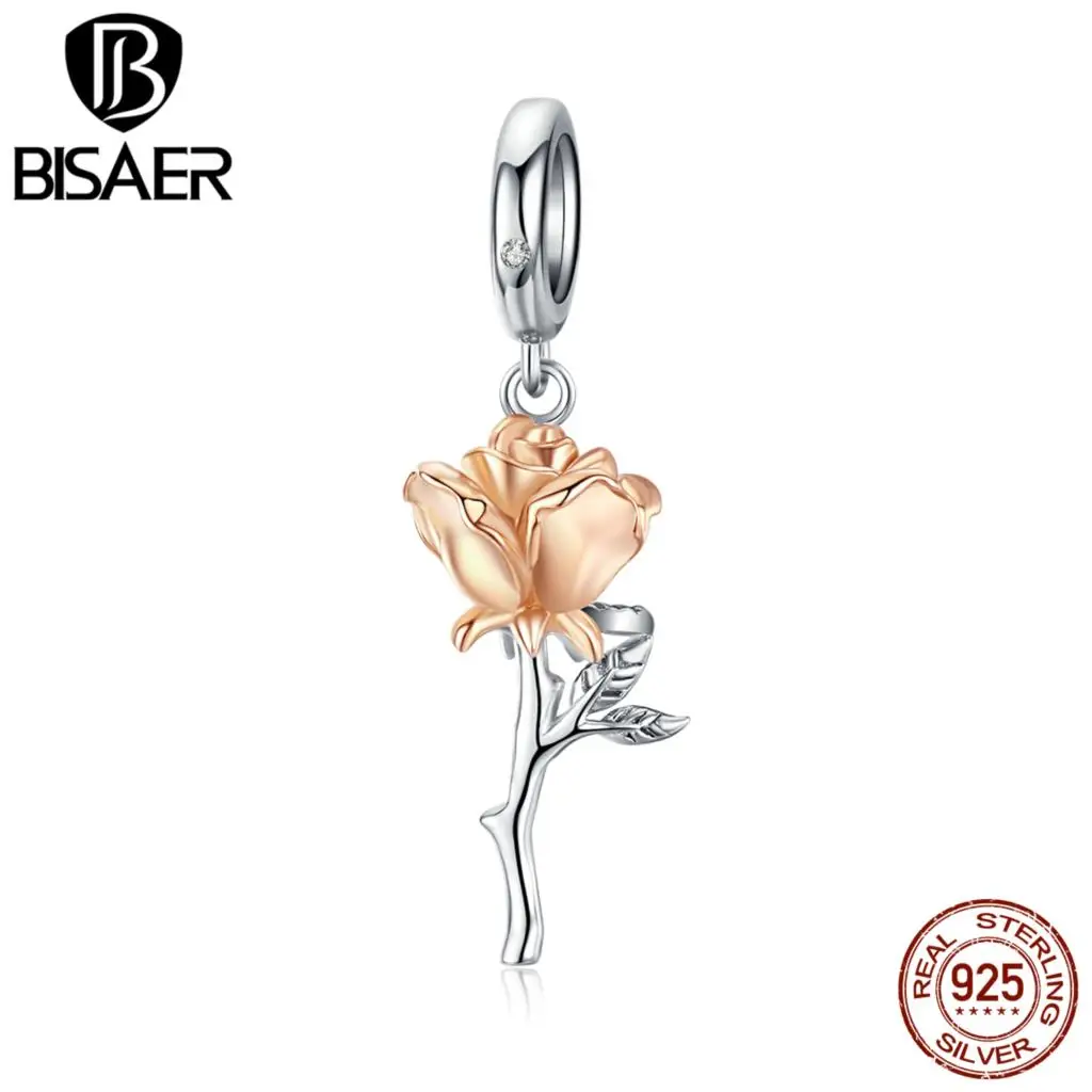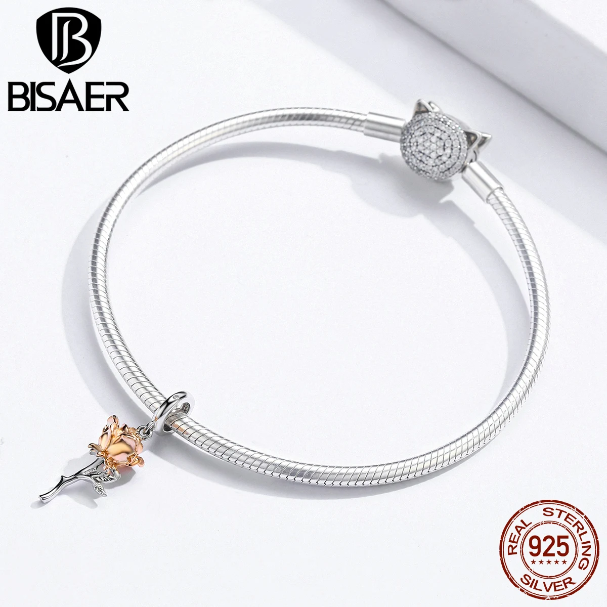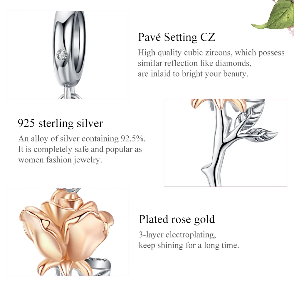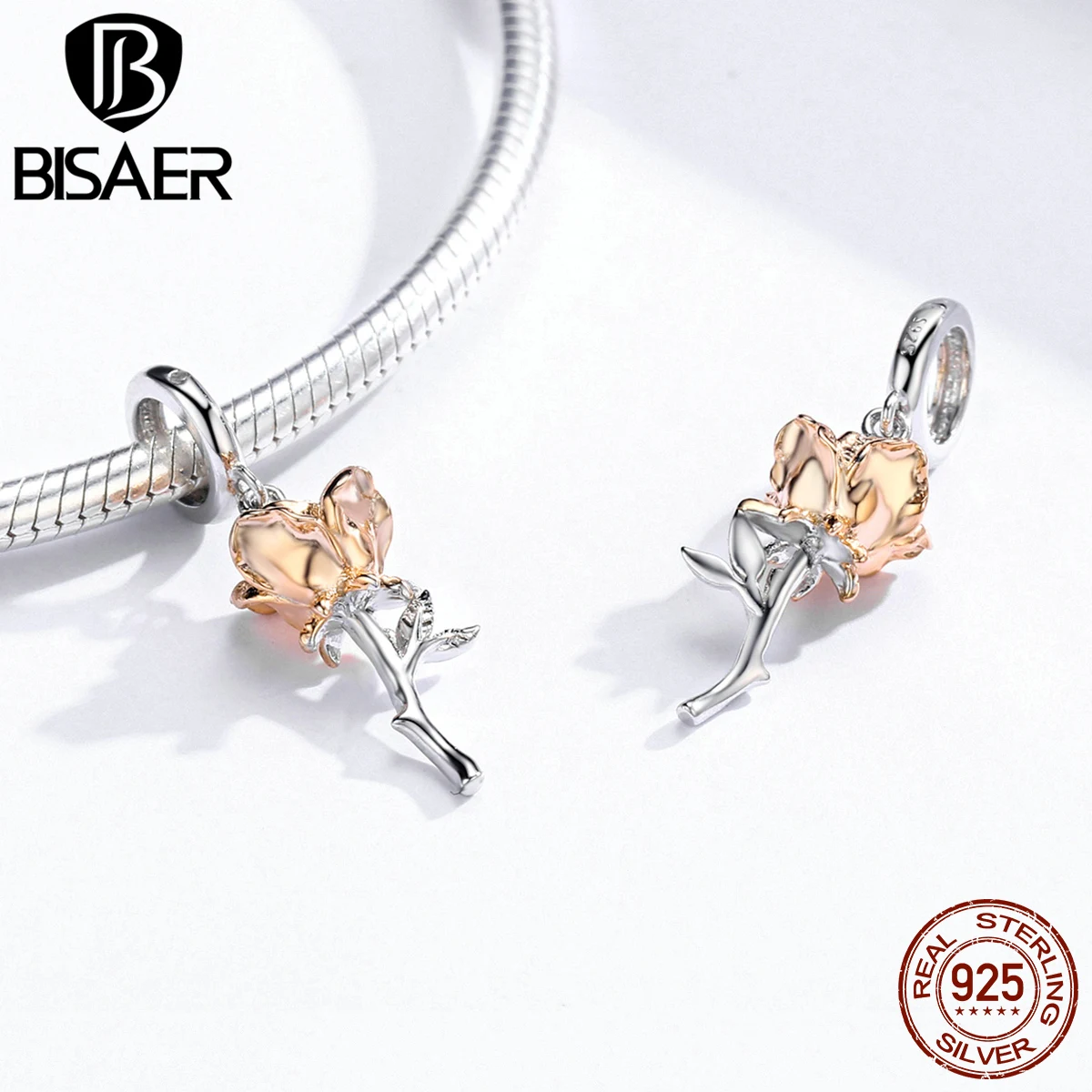 Розы цветы бусины бисаер 925 пробы серебро цветущие розовые Цветочные Подвески бусины подходят DIY Браслеты и браслеты аксессуары EFC145