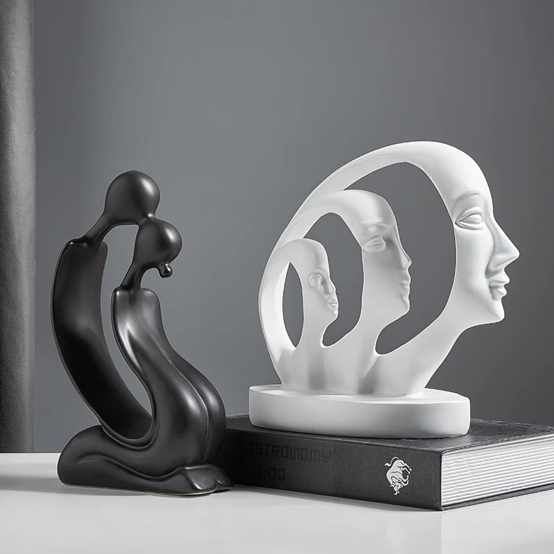 Скульптура с абстрактным лицом, статуя из смолы, пара моделей, Совр...