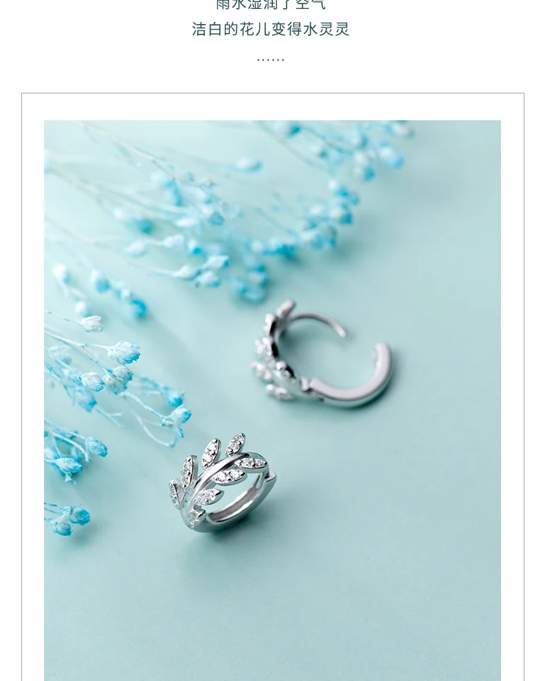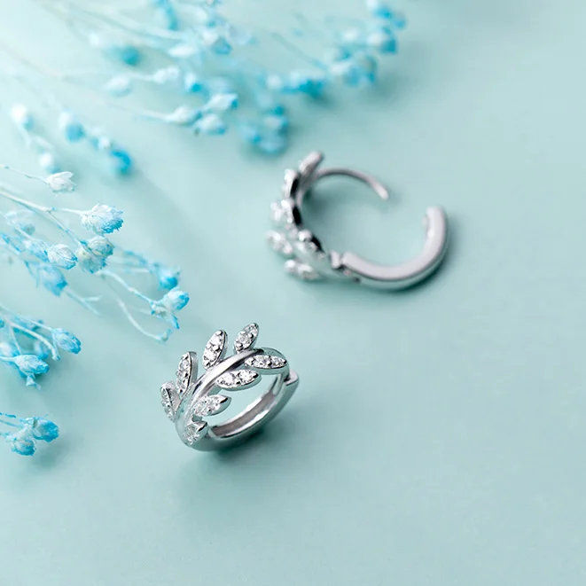 Серьги-кольца Huggie женские из настоящего стерлингового серебра 925 пробы, маленькие ювелирные украшения в виде листьев из австрийского хрусталя с фианитами
