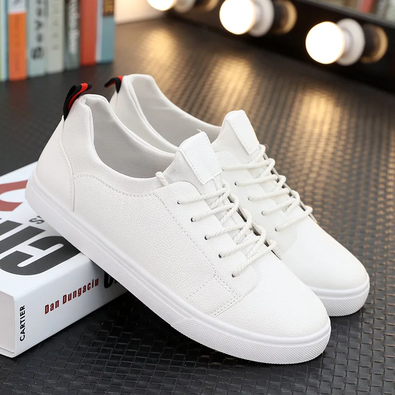 Кроссовки мужские из ПУ кожи, Повседневная модная обувь на плоской подошве, черные, белые