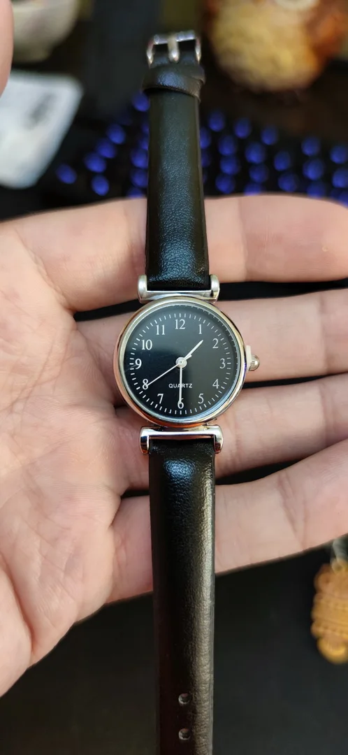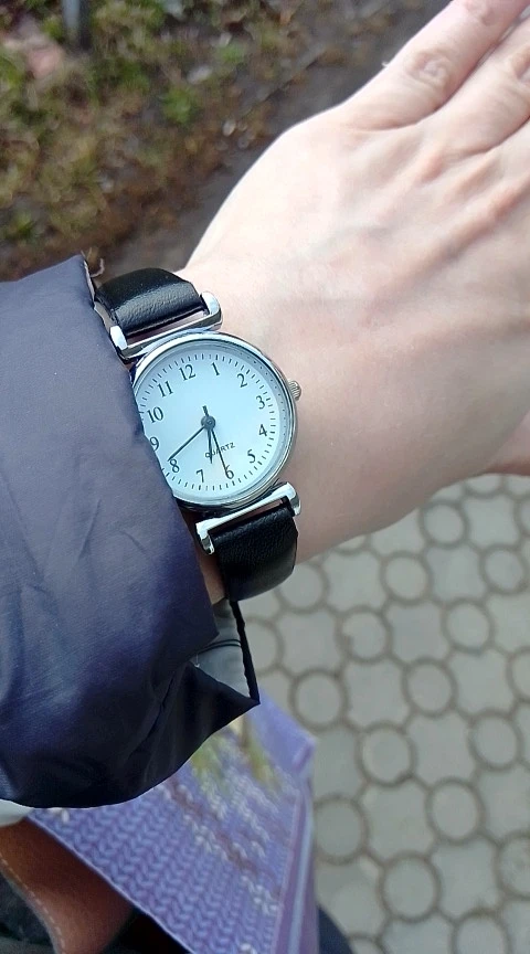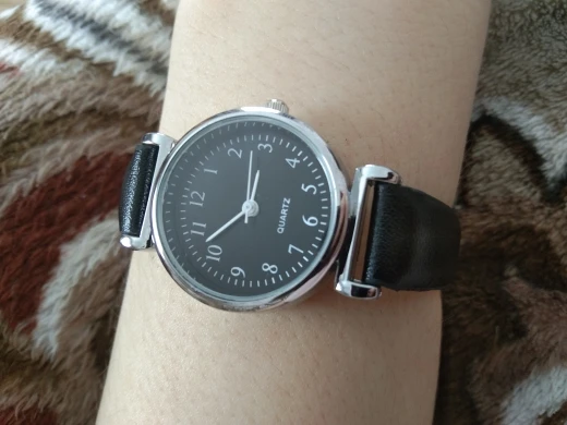 Симпатичные аккуратные часики. Думала, будут немного больше, но нет - они миниатюрные, классические, подойдут по любой костюм. Единственно, будьте внимательные, эти часы для небольшого запястья. С моим обхватом запястья 15.5 см - застегиваю часы на вторую-третью дырочку. Скорее всего, они максимум для запястья в 17-18 см. Шли долго, что не удивительно. Но ради милых часов по такой демократичной цене стоило подождать.