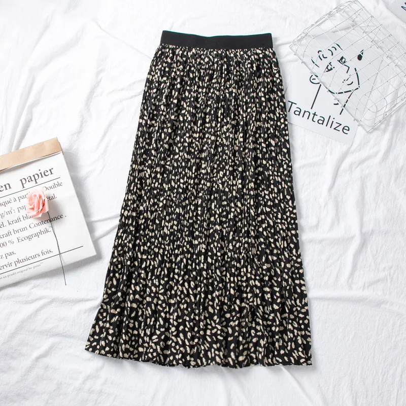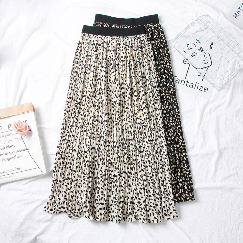 Женская винтажная юбка с леопардовым принтом, элегантная плиссированная юбка с высокой талией, корейский стиль, лето 2020