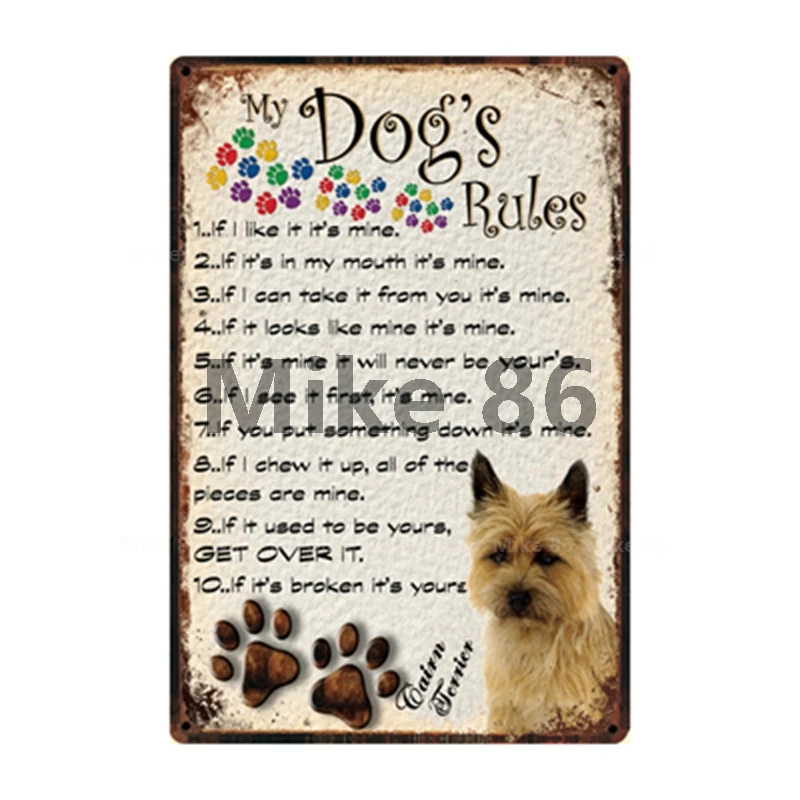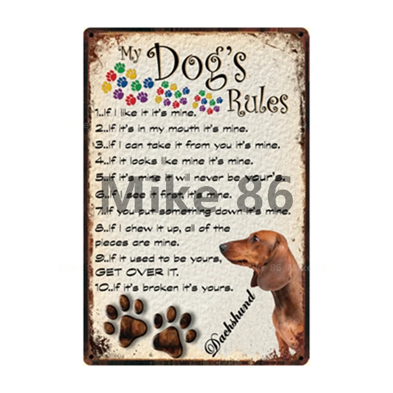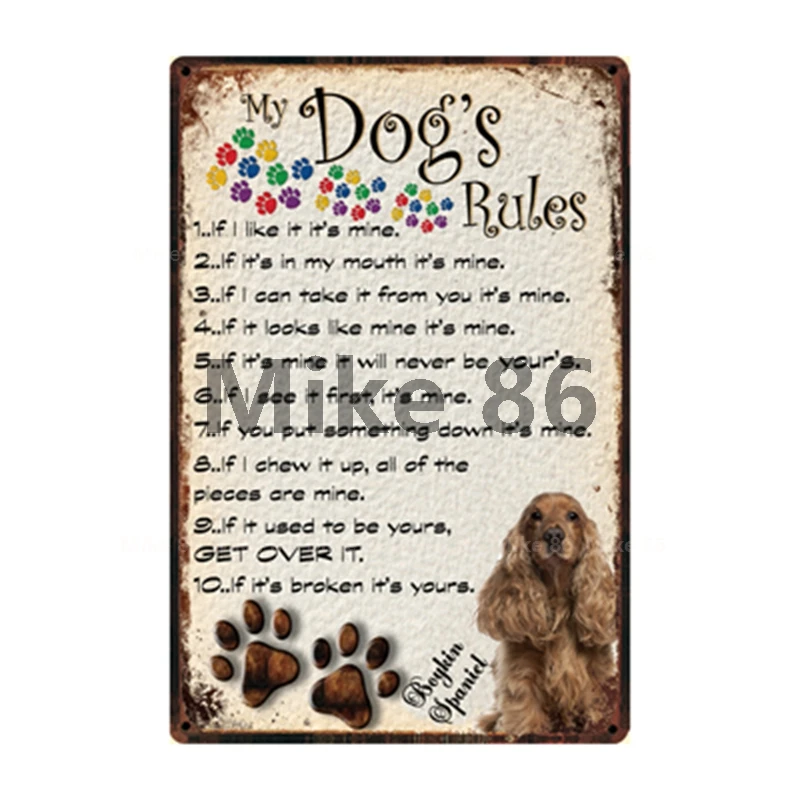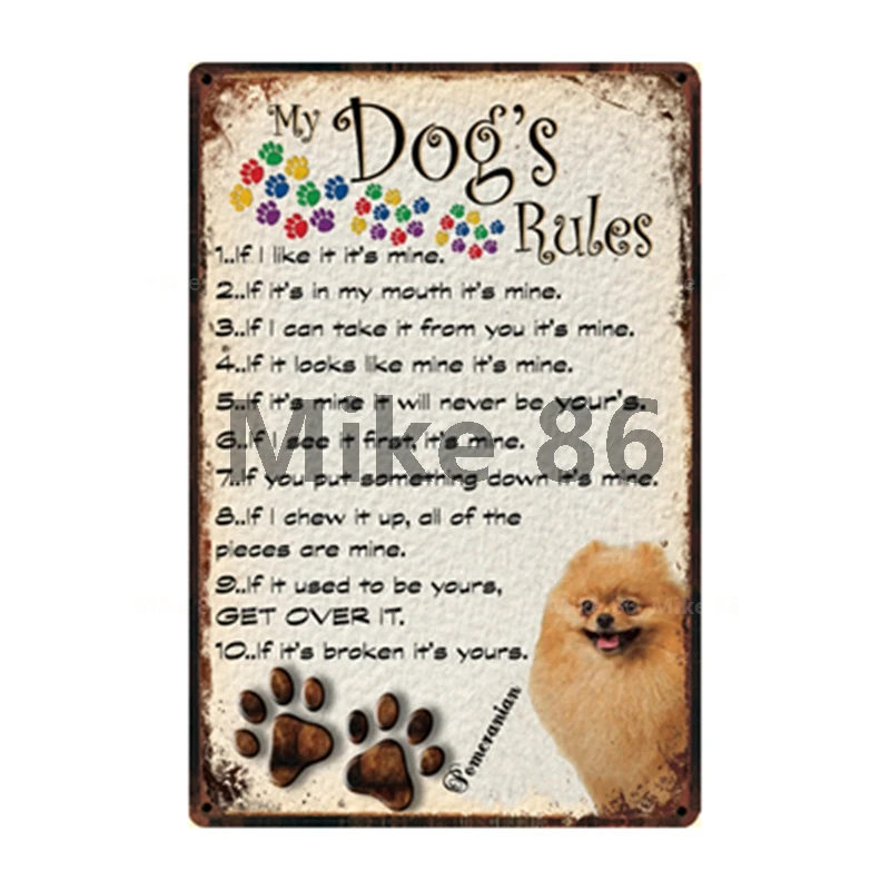 Mike86 металлический плакат с надписью My Dog's Rules: пудель, померанский хаски, мопс, жестяной плакат, Декор для дома, бара, Настенная картина размером 20*30 см