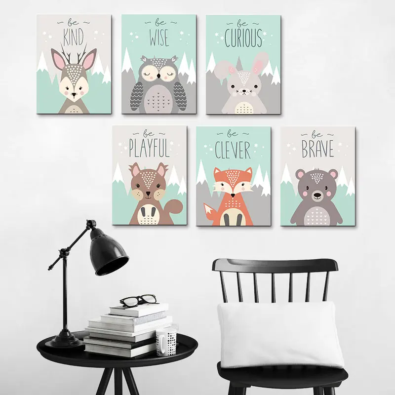 Картина на холсте с рисунком кролика, ежика, рыси, волка, совы, лис...