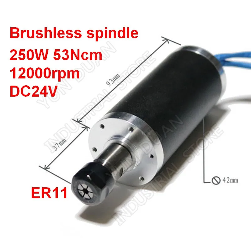 Бесщеточный шпиндель 250 Вт, 12000 обмин, DC 24 в 42 мм, цанги ER11 для сверления, фрезера, резьбы по металлу, пластику, дереву