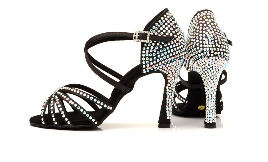Женские туфли для латиноамериканских танцев, черные, стразы