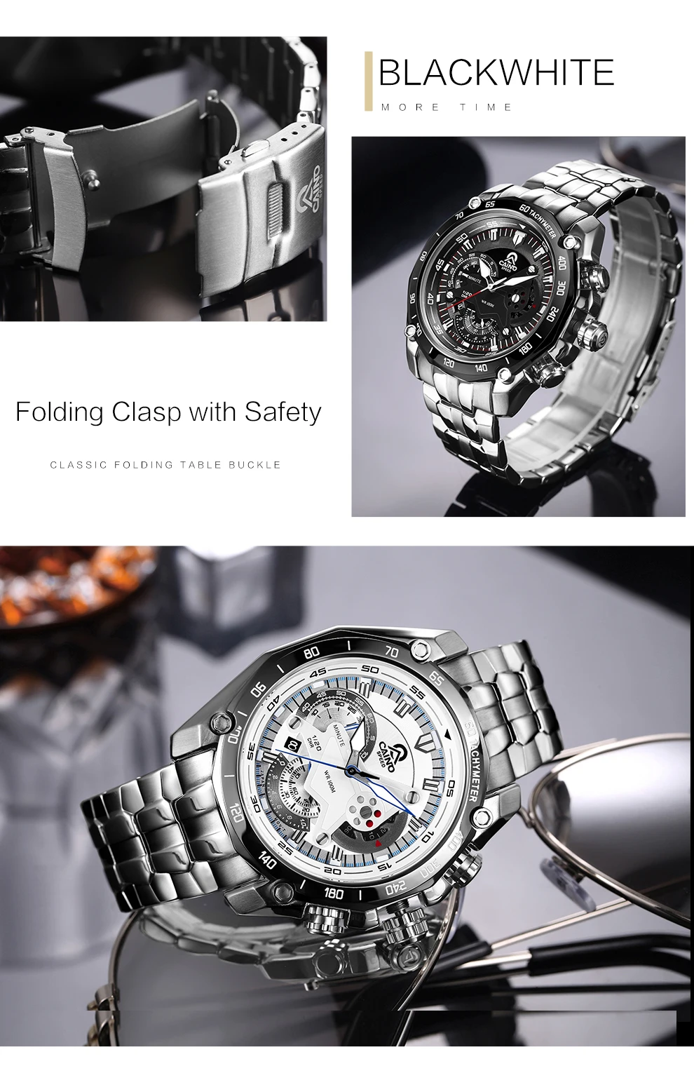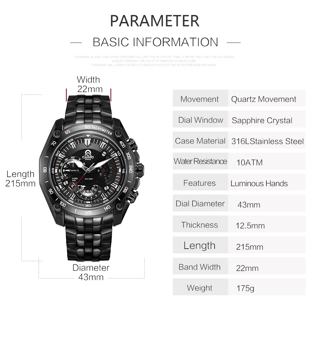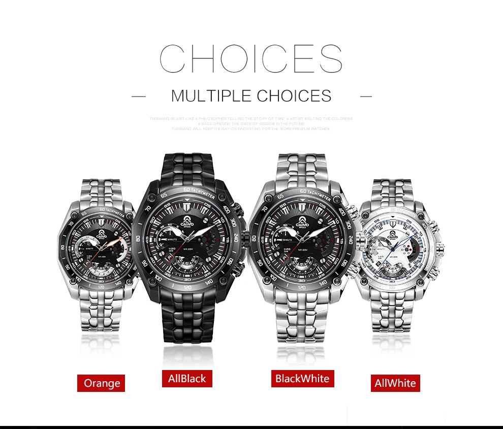 CAINO Элитный бренд кварцевые часы Для мужчин Нержавеющаясталь реме...