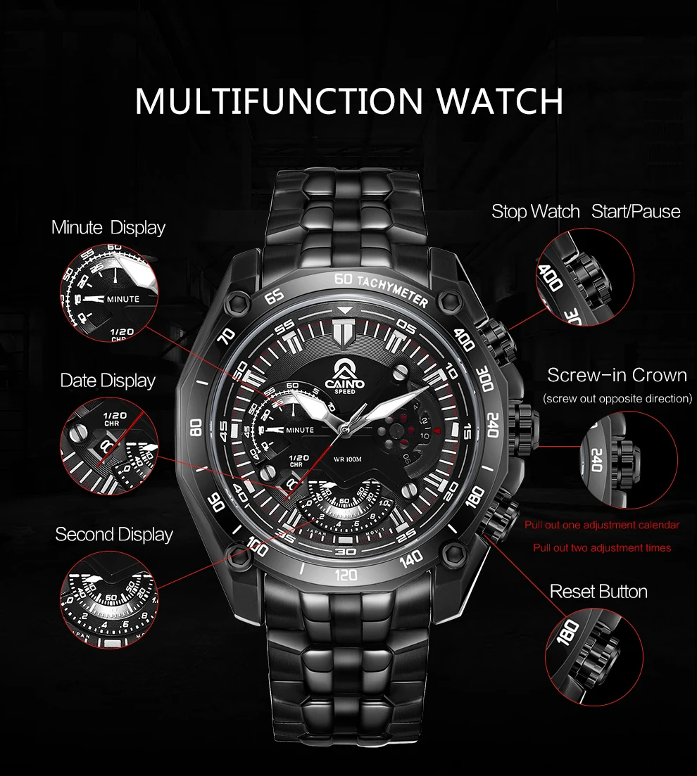 CAINO Для мужчин Multi-Функция спортивные часы Для мужчин Элитный б...