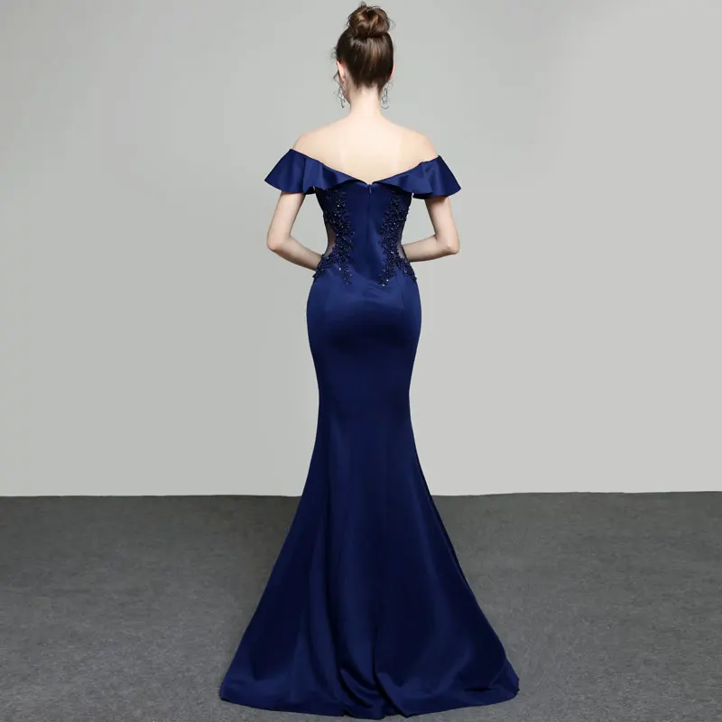 Женское атласное платье-Русалка, эластичное вечернее платье с бусинами и открытыми плечами, Марокканское официальное платье для выпускного вечера