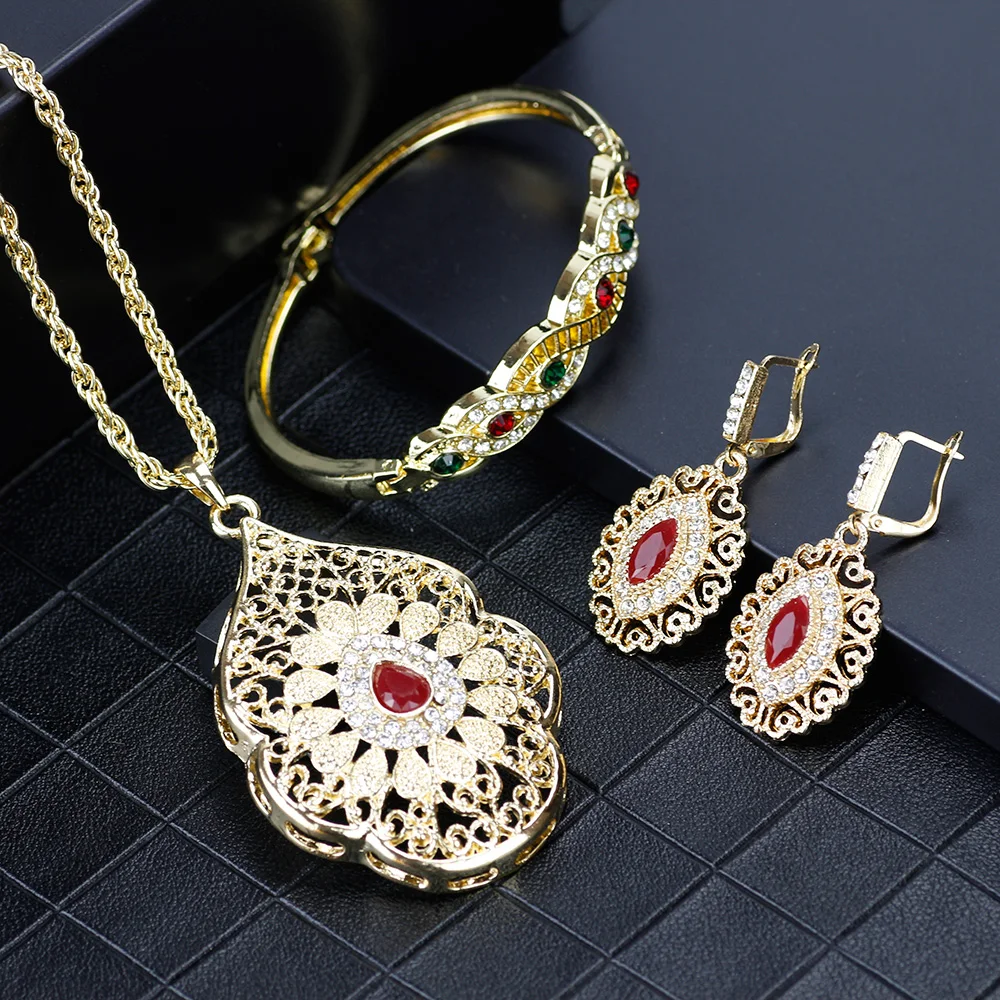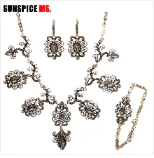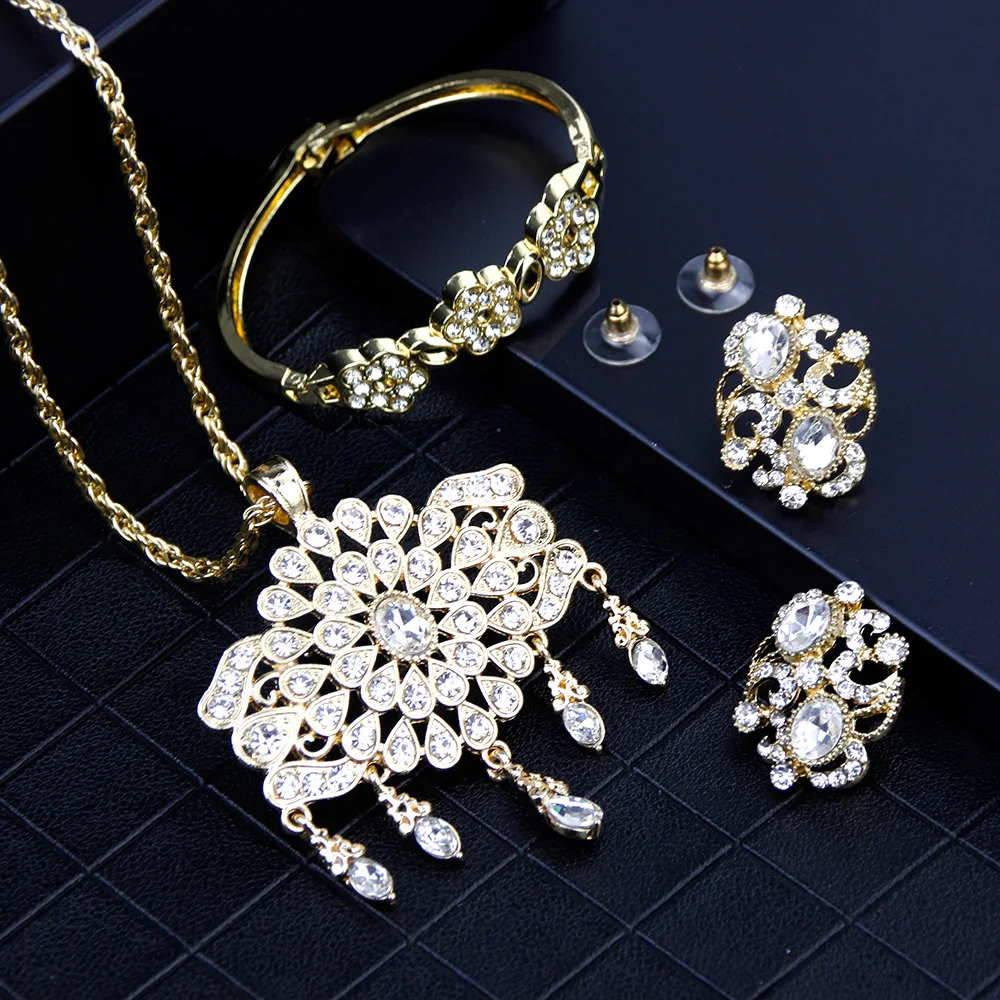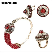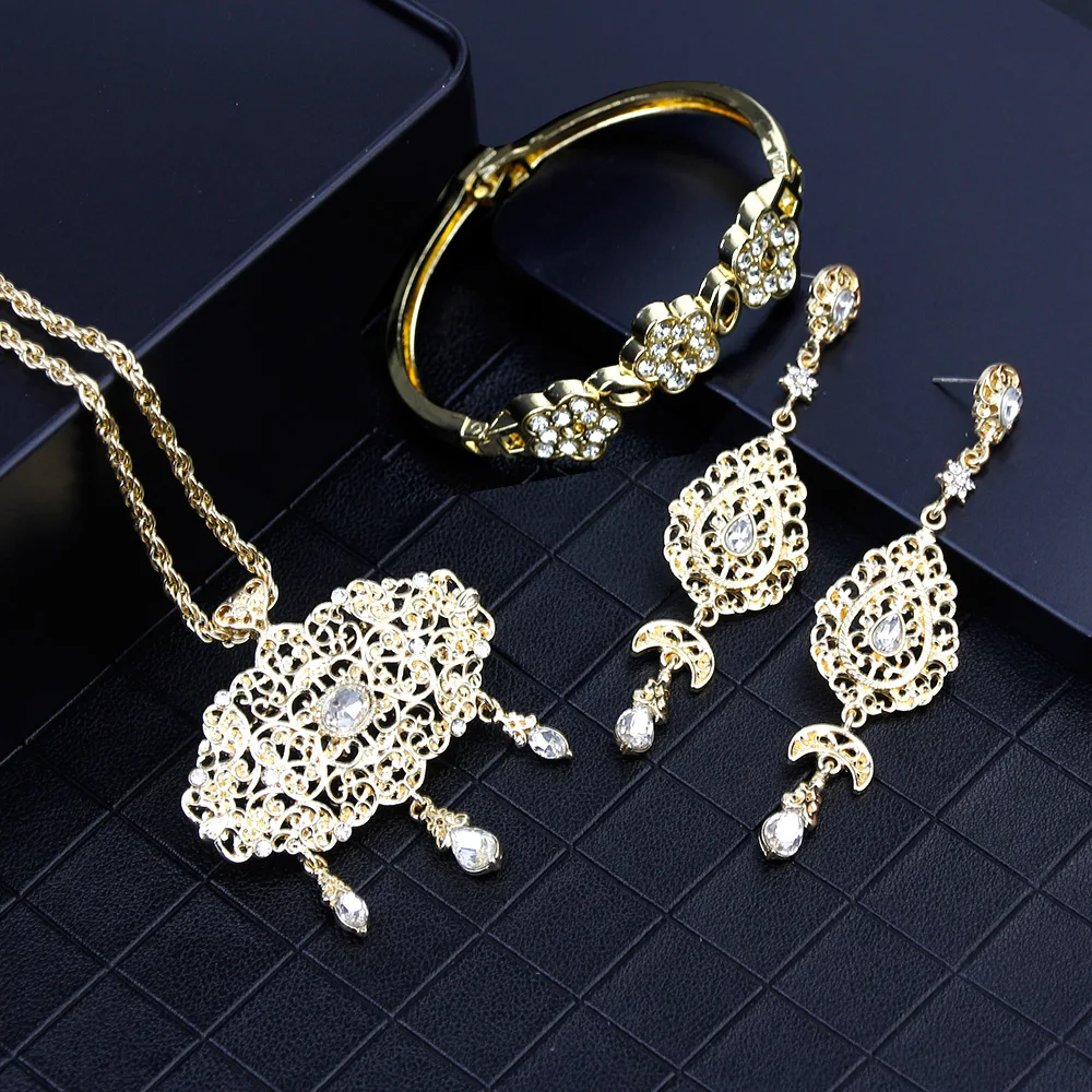 SUNSPICEMS арабское Золото Цвет браслет серьги брошь Дубай этнические Свадебные украшения подарки для невесты Марокко для женщин Кристалл Ювелирные наборы