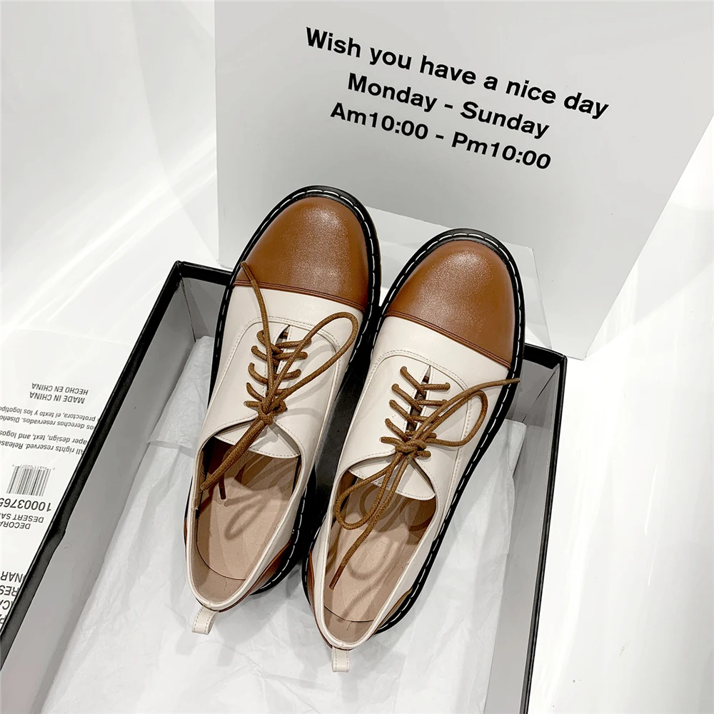 Туфли-оксфорды женские кожаные, на плоской подошве, со шнуровкой, с круглым носком, 33, 34, 41, в британском стиле, для весны, 2021