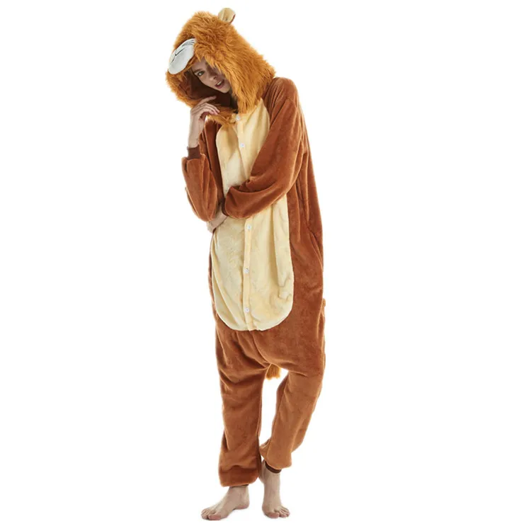 Пижама-Кигуруми для взрослых, зимняя пижама в виде животных, Льва, ...