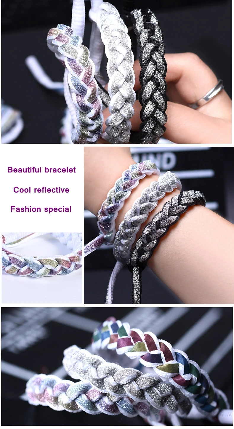 Новые светоотражающие шнурки, лазерные блестки, плетеный браслет, к...