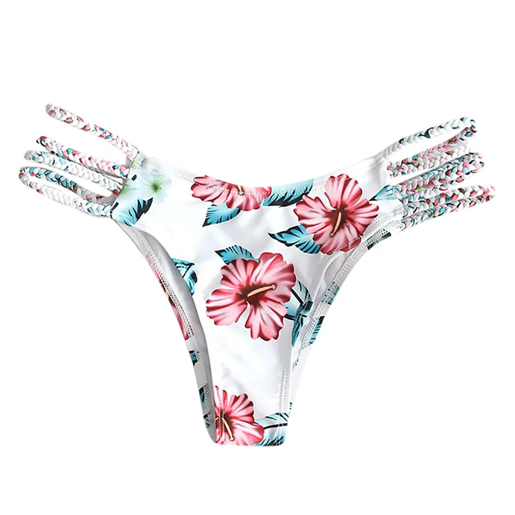 Сексуальные стринги с цветочным принтом, бикини бразильское для женщин, дерзкие, с V-образным вырезом, нижняя одежда для плавания, женские трусики, бикини, шорты для плавания