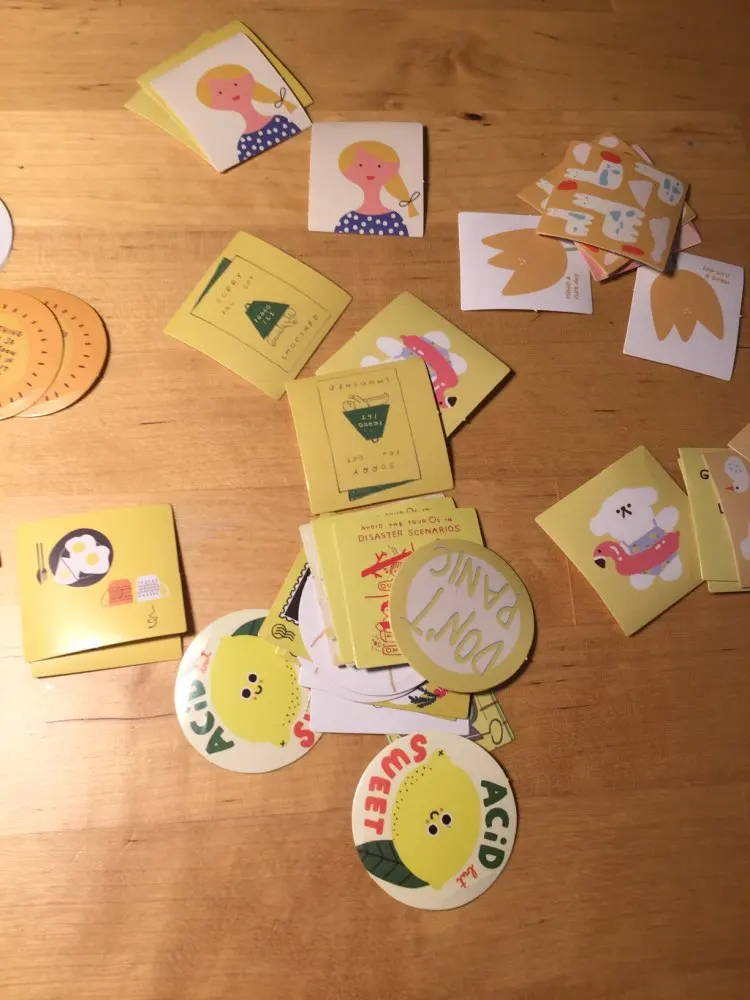 это самые милые наклейки что я когда-либо видела! пришло всё целое, не помялось. качество очень хорошее, всё ярко, наклейки плотные, не порвёте. рисунки просто прекрасный и уву. берите, не пожалеете! (а я бегу покупать ещё одну коробочку)