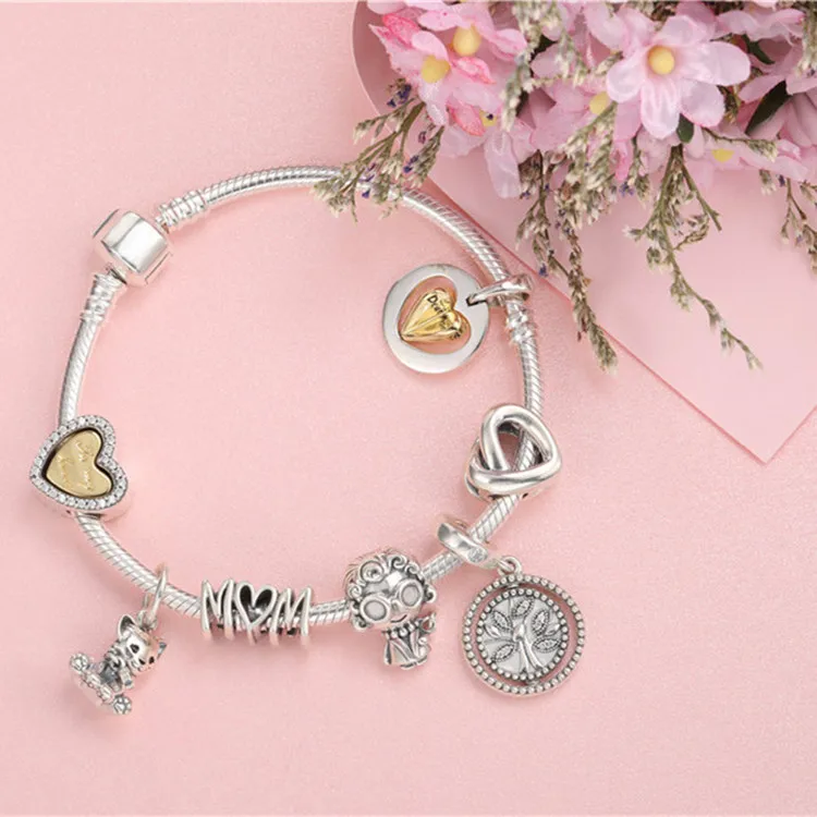 925 пробы серебро миллионов Древа любви; Мам и детей, семейные наряды Шарм DIY ювелирных украшений Бусины, соответственные Пандоре обаятельные браслеты с подвесками Серебро 925 оригинальный браслет ювелирные изделия