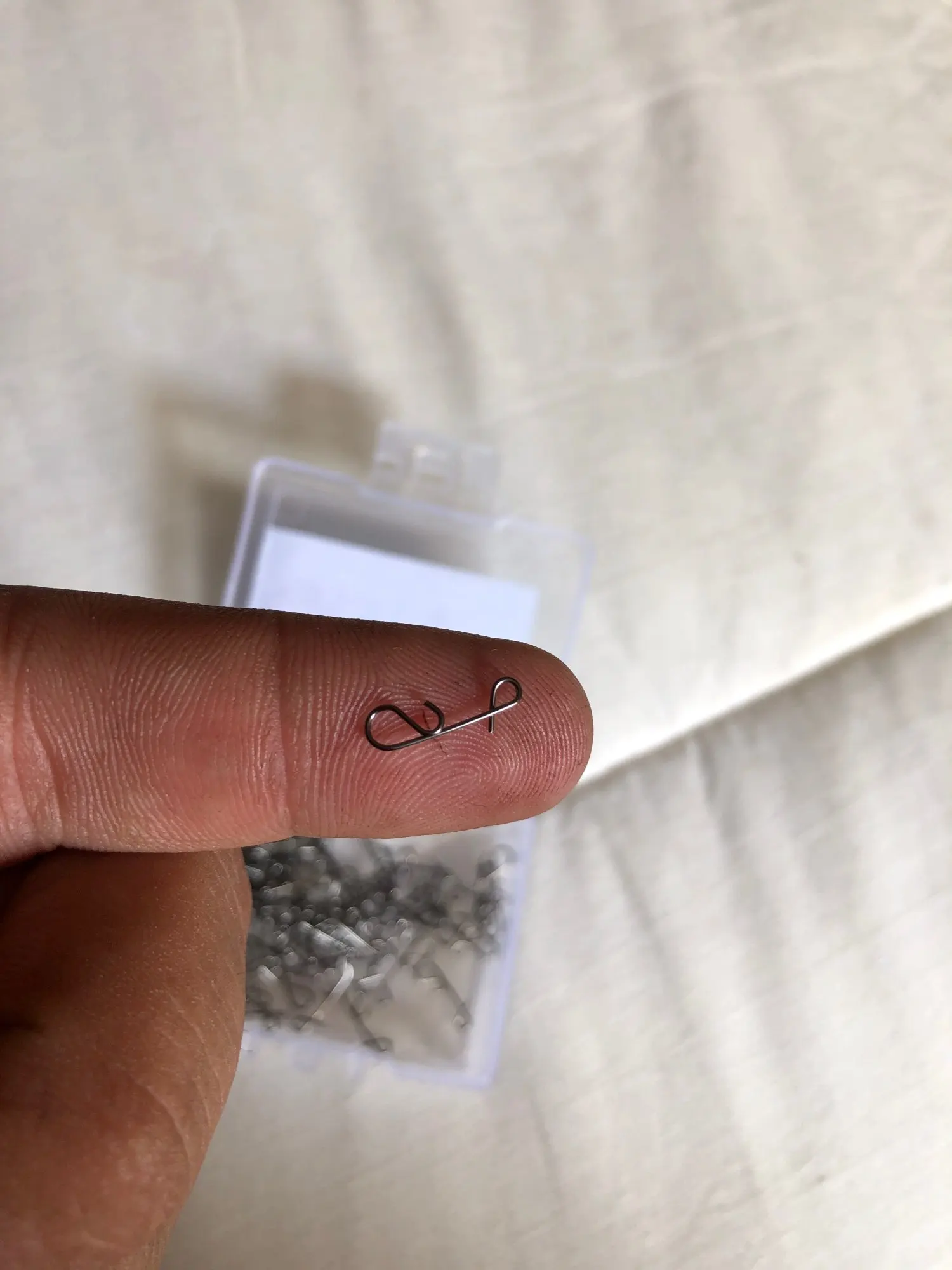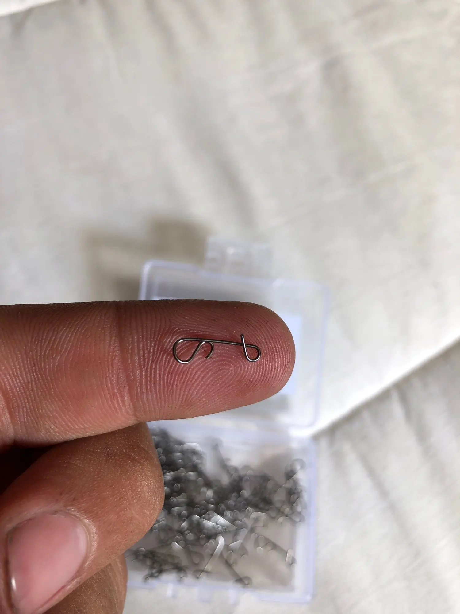 Доставка за 12 дней! Карл! 12 !!!! Безузловки качественные. Размеры соответствует описанию. Покупал XL# 50pcs. Длина 18мм., диаметр проволоки 0,7мм. Вес 0,15гр./шт. Неодимовым магнитом магнитится ооочень слабо, можно сделать вывод, что сталь не обычная. Не гвозди!))) Слегка пружинистая. Рекомендую продавца! 5 звёзд!!!!