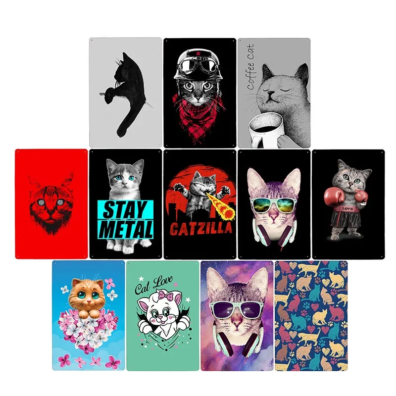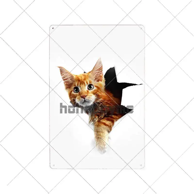 Металлический постер с мультяшным котом, жестяной знак для домашнего питомца, картина для дома, бара, паба, комнаты, семейный декор, 20x30 см
