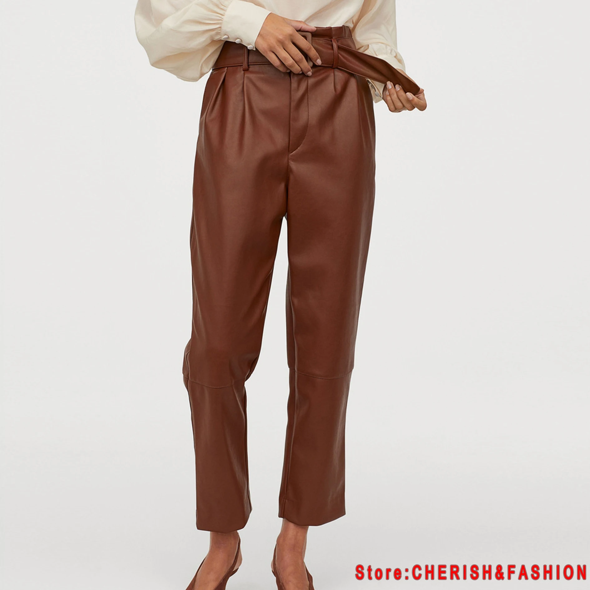 Брюки женские из искусственной кожи, с высокой талией и карманами