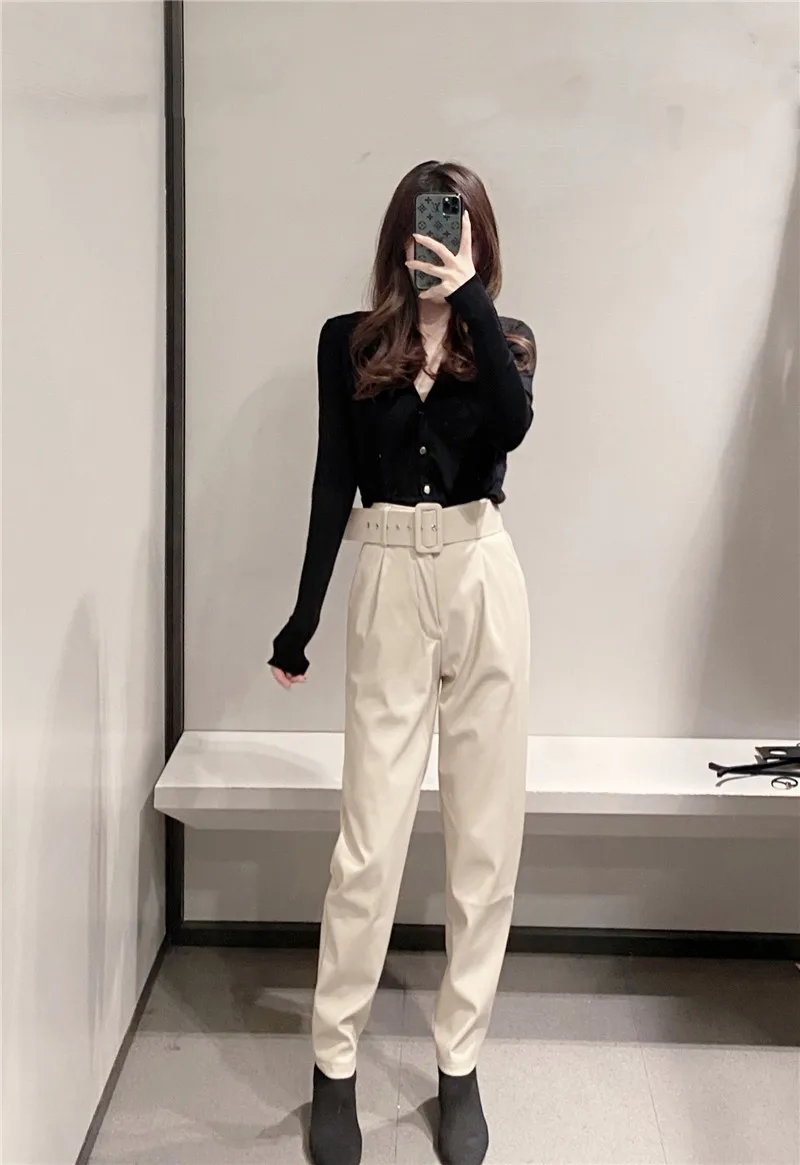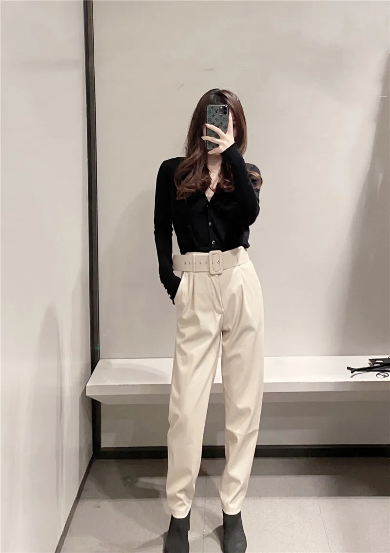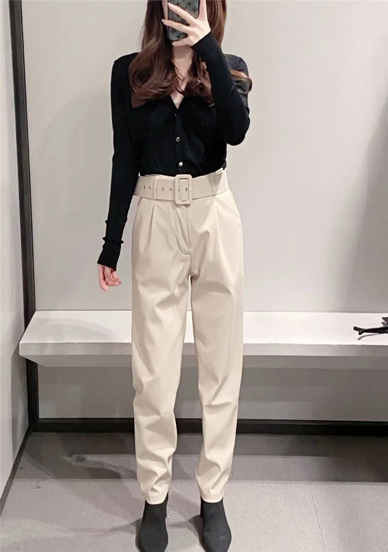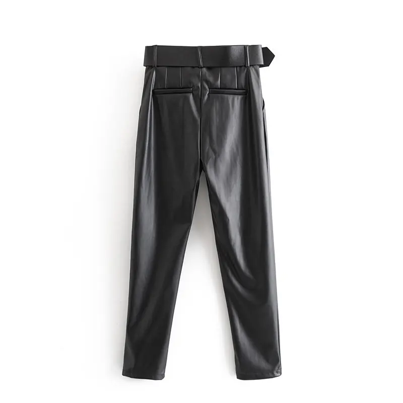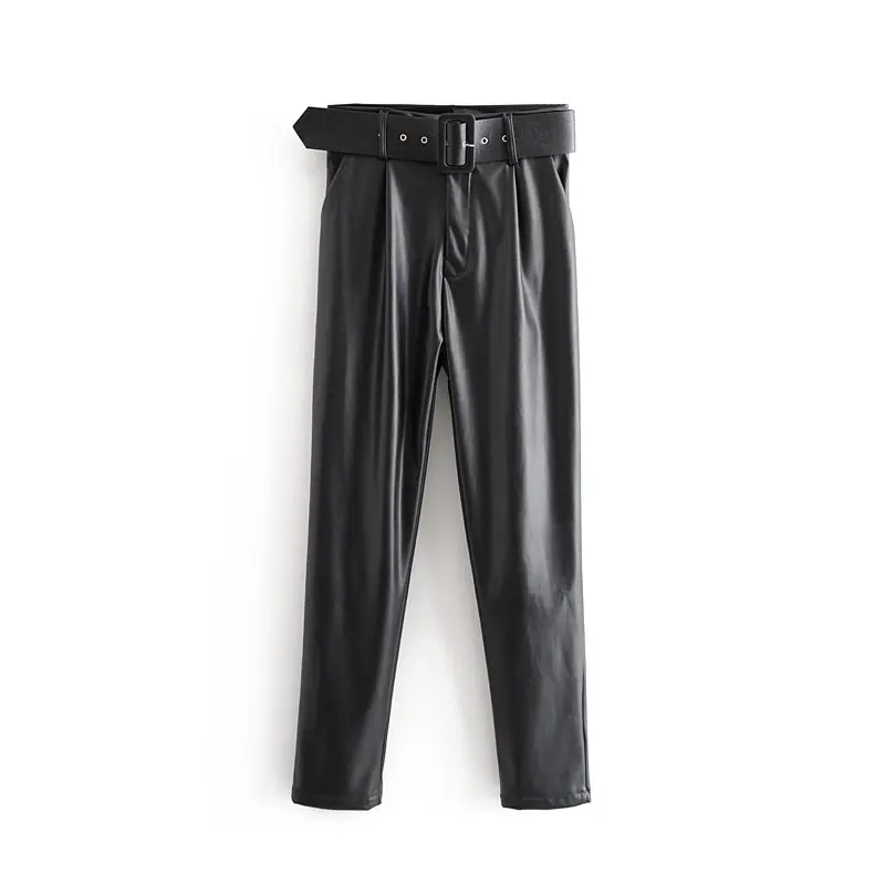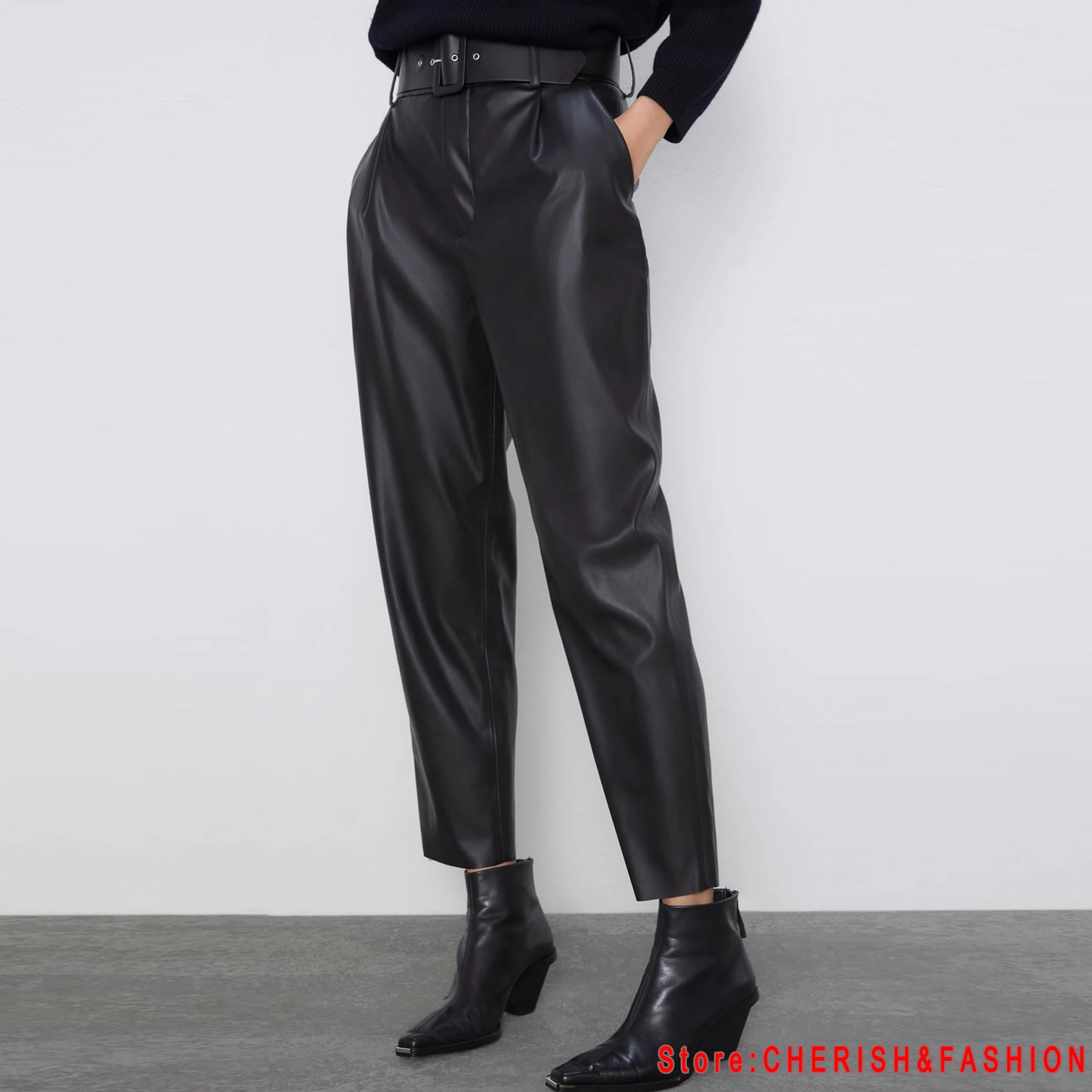 Брюки женские из искусственной кожи, с высокой талией, 3 цвета