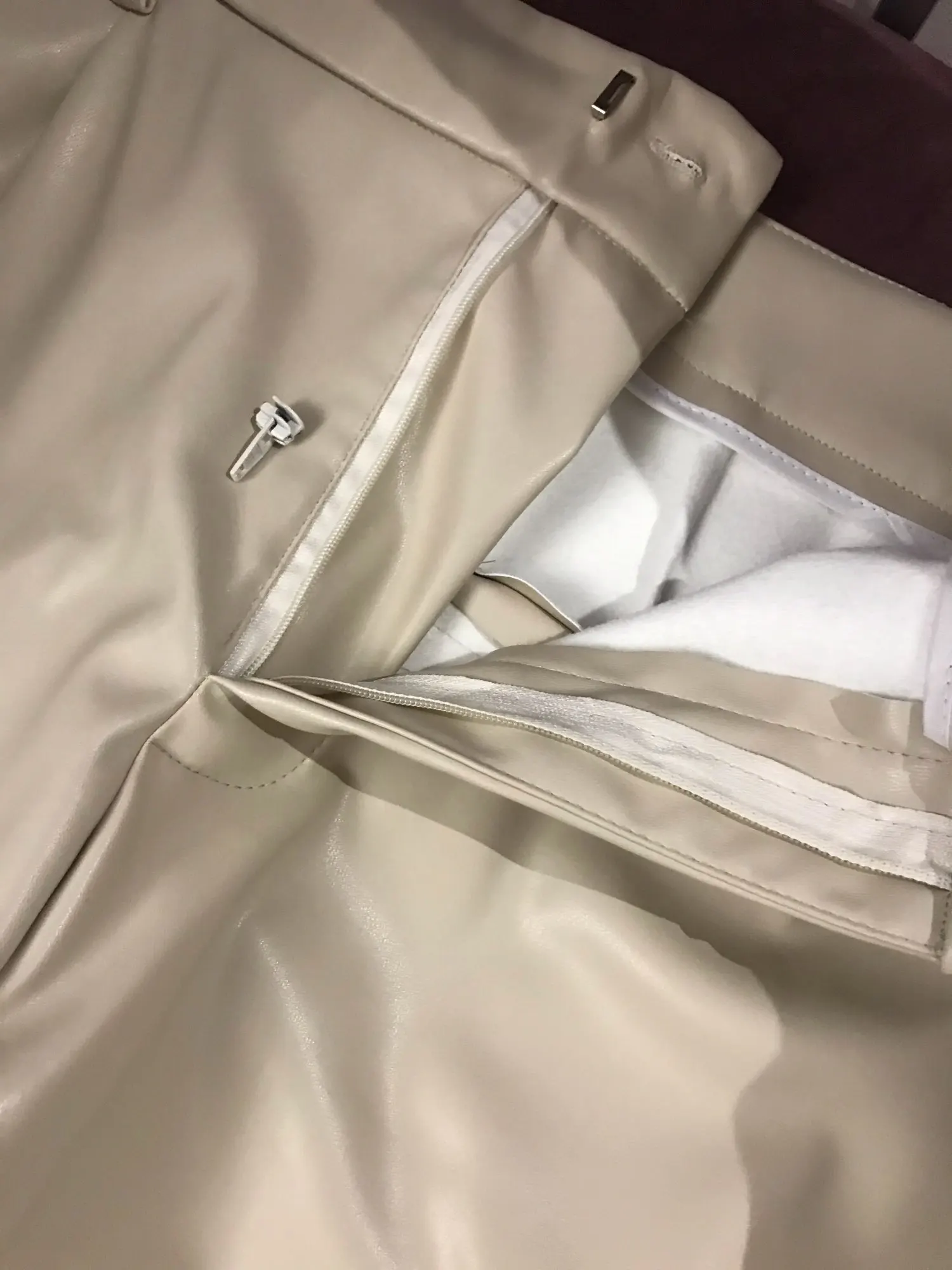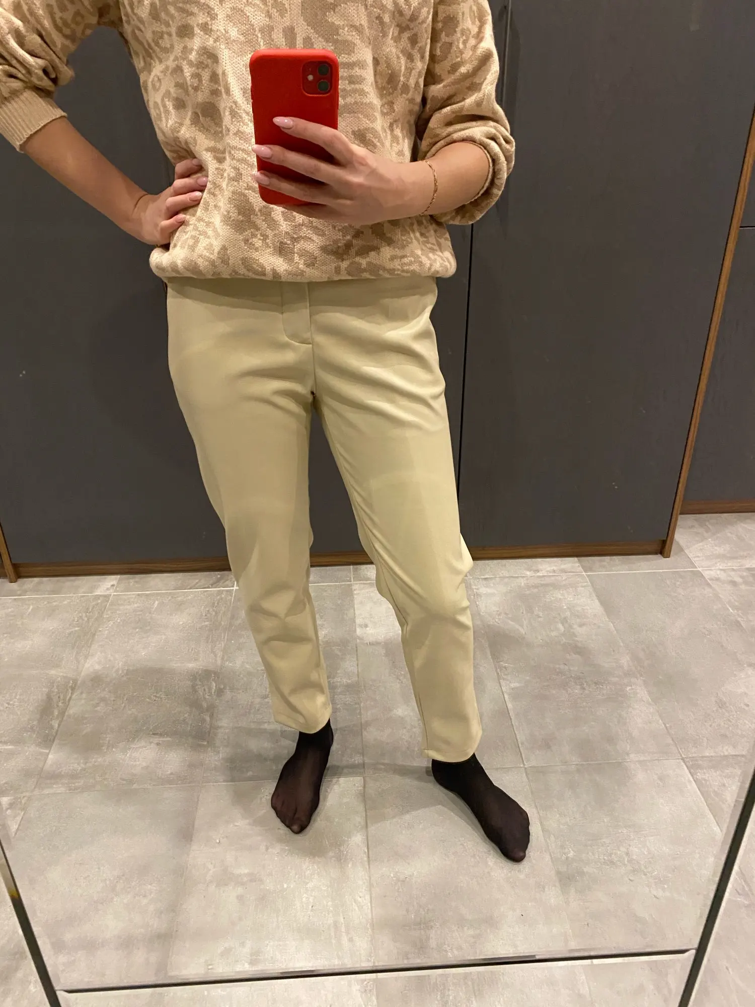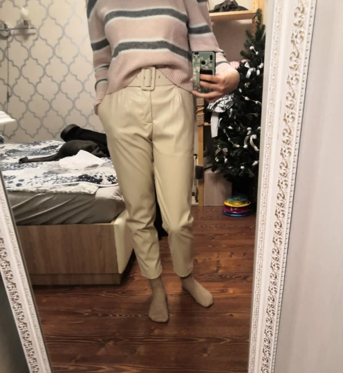 Классные кожаные брюки, все как на фото, комфортные, мягкие внутри, но короткие на мой рост 169, размер xs брала на параметры об 88, от 69, сидят хорошо, если брать больше размер, чтобы были на 1-2 см длиннее, но на попе были бы не красиво, тут на любителя