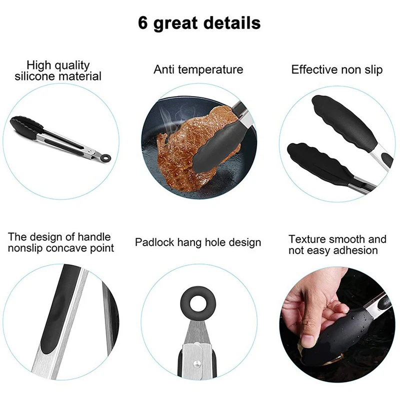 Набор кухонных щипцов, инструменты для барбекю, щипцы из нержавеющей стали с силиконовыми наконечниками, для барбекю, приготовления салата, жарки, кухонный инструмент