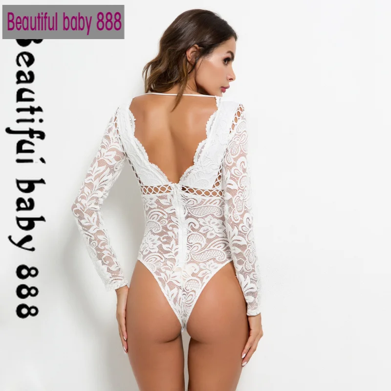 2020 новые летние женские черный, белый цвет кружева боди Femme боди с низким вырезом на спине, длинный рукав, облегающее сексуальное Femme выдалбливают Клубные вечерние комбинезоны