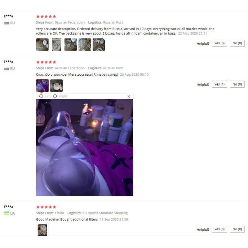 Положительный: получил за 1 неделю! Отрицательный: на машине есть инструкция по эксплуатации, но только меры предосторожности использования, на самом деле нет инструкции по использованию машины... Внезапно мы не знаем, какой шланг соответствует таким присоске или даже какому присоску использовать в зависимости от части корпуса, который мы хотим обработать. И мы ничего не находим в Интернете, просто платные тренировки...