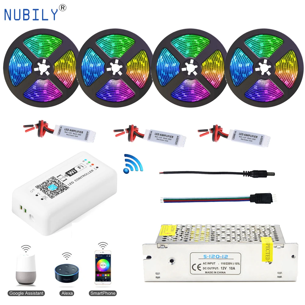 Светодиодная лента 5050 RGB с Wi-Fi, водонепроницаемые гибкие ленты, Светодиодная лента 20 м, 10 м, Светодиодная лента с Wi-Fi Смарт-контроллером, источник питания 12 В постоянного тока