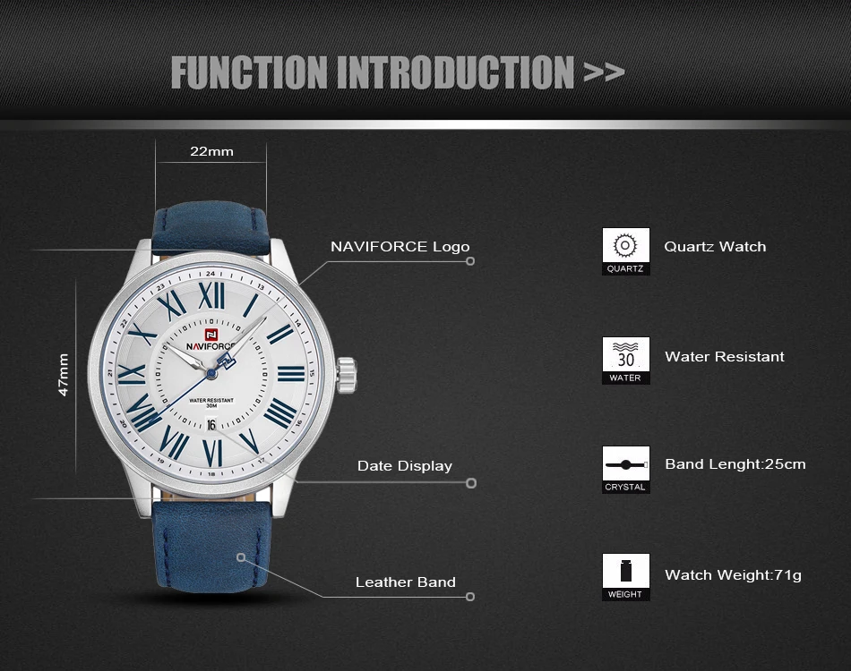 Часы наручные NAVIFORCE Мужские кварцевые, спортивные брендовые модные повседневные в стиле милитари