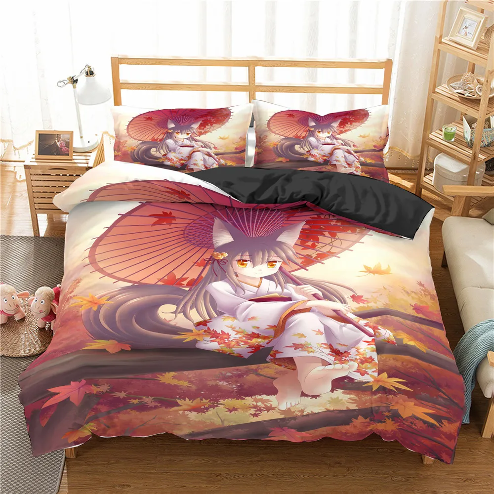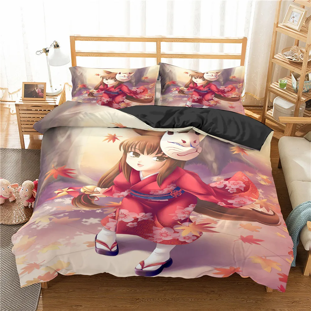 Японское постельное белье с аниме, комплект с мультяшным принтом для девочек, мягкий пододеяльник большого размера, всесезонный, зимний комплект постельного белья